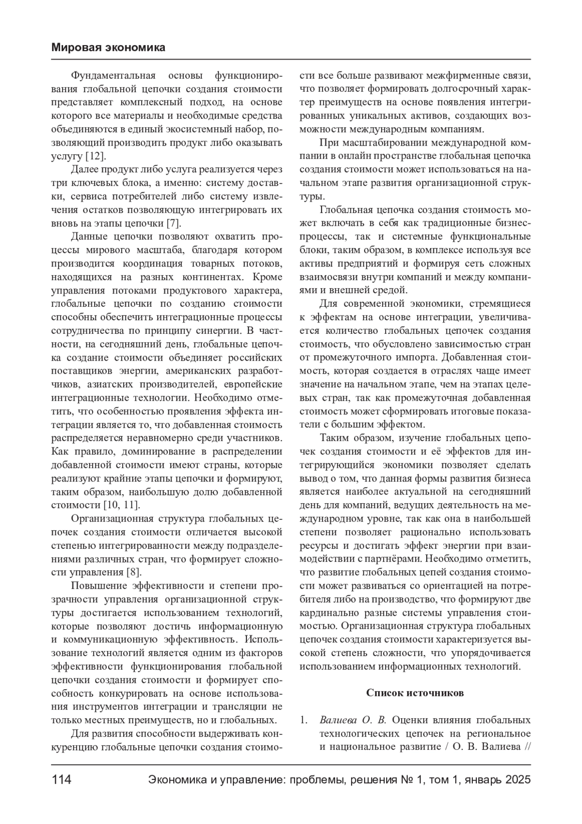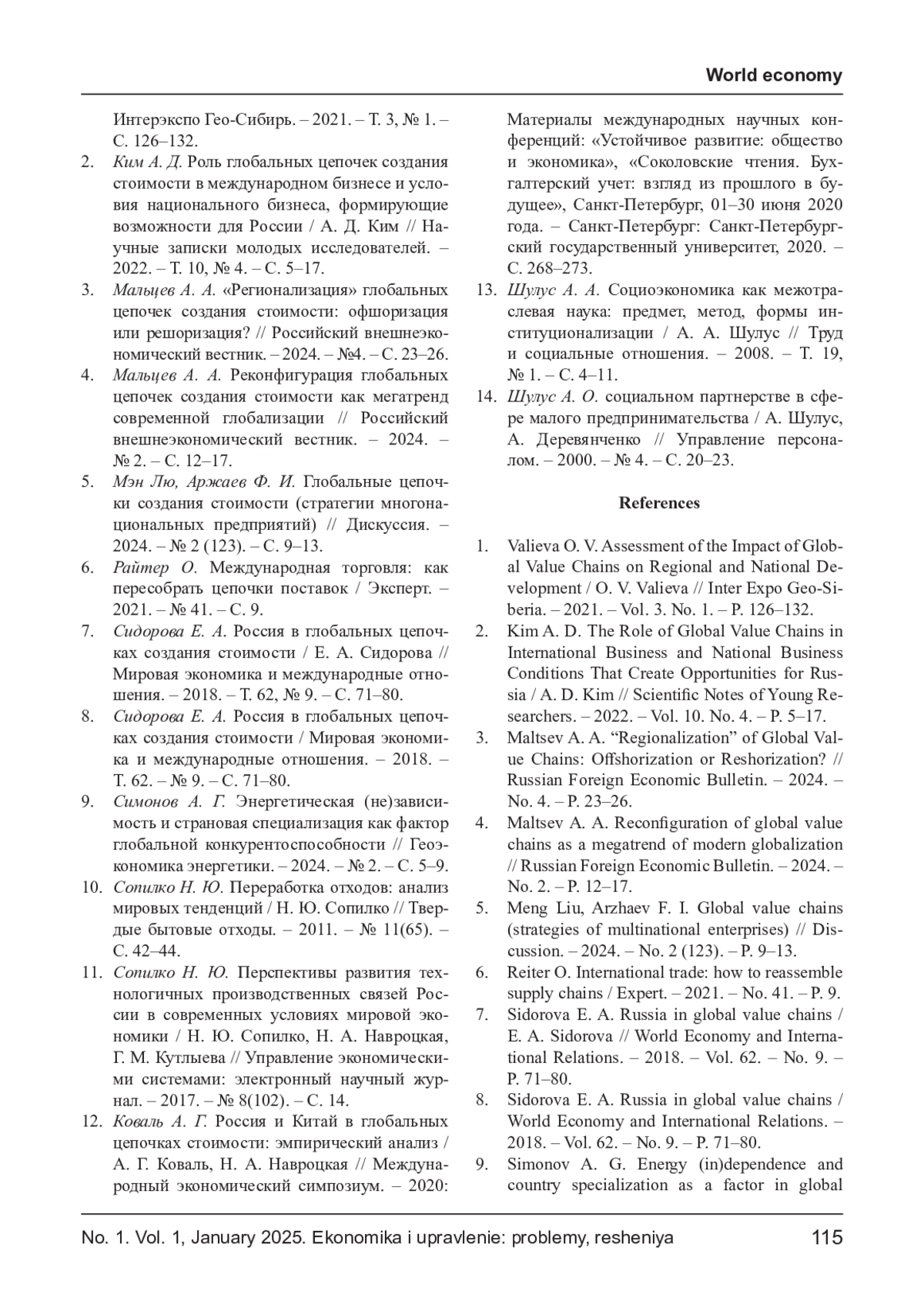 1. Валиева О. В. Оценки влияния глобальных технологических цепочек на региональное и национальное развитие / О. В. Валиева // Интерэкспо Гео-Сибирь. - 2021. - Т. 3, № 1. - С. 126-132. EDN: GMJWPC