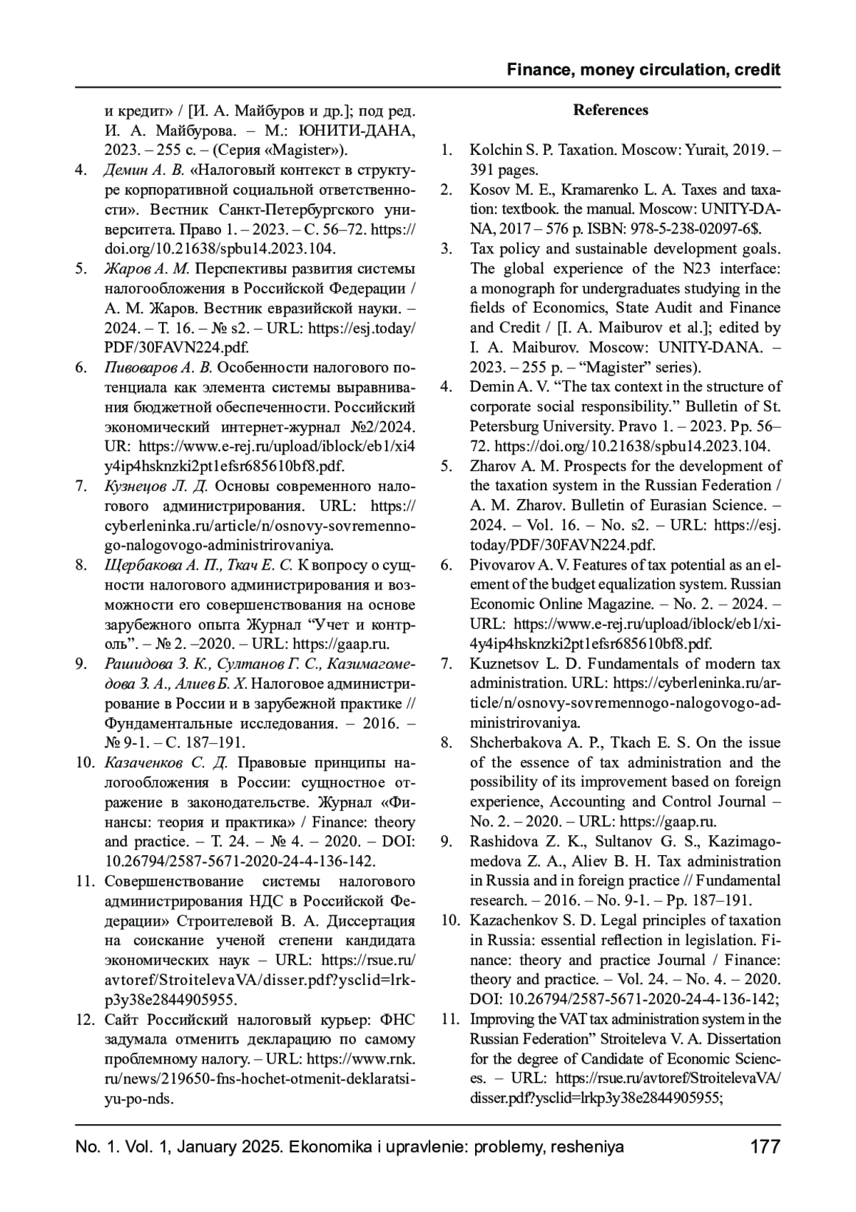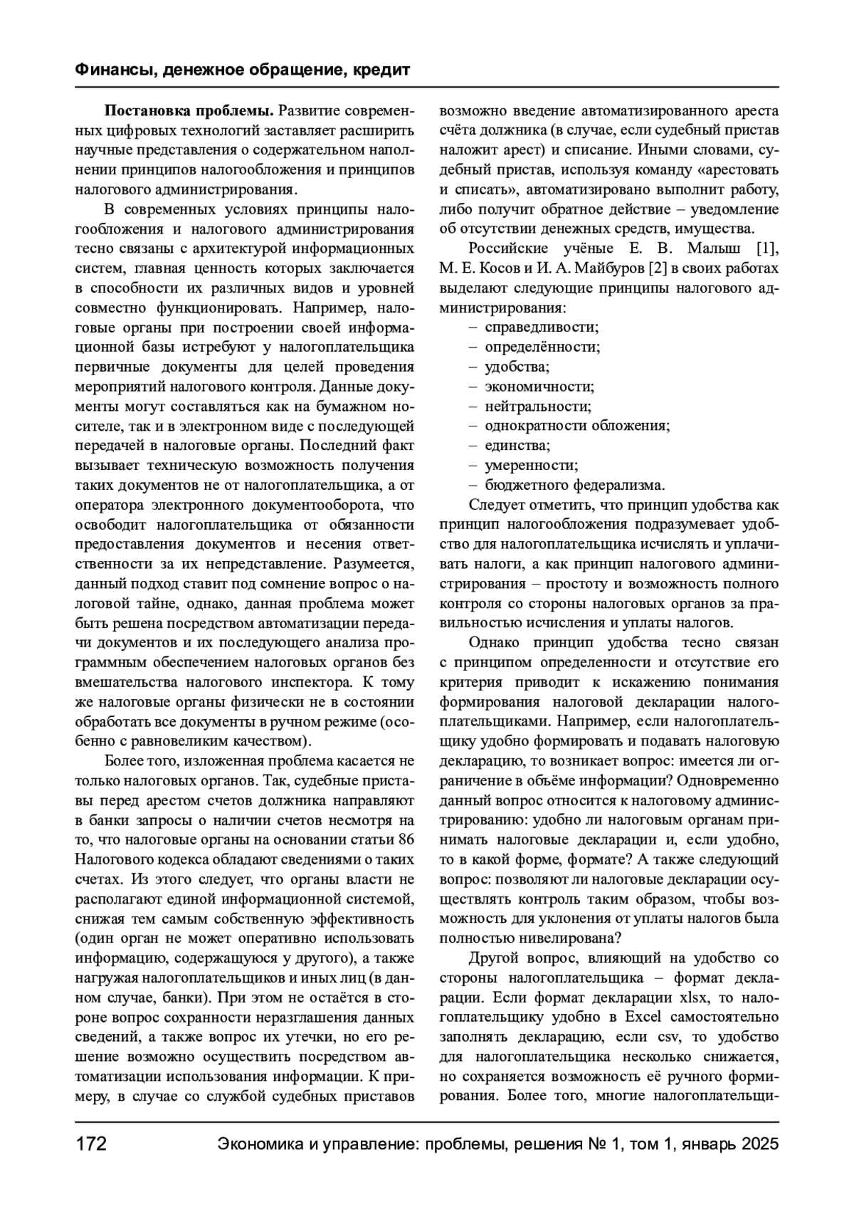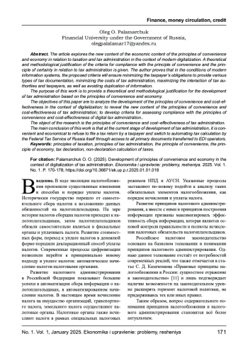 Статья: РАЗВИТИЕ ПРИНЦИПОВ УДОБСТВА И ЭКОНОМИЧНОСТИ В УСЛОВИЯХ ЦИФРОВИЗАЦИИ НАЛОГОВОГО АДМИНИСТРИРОВАНИЯ (2025)