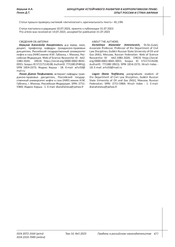 Статья: КОНЦЕПЦИИ УСТОЙЧИВОГО РАЗВИТИЯ В КОРПОРАТИВНОМ ПРАВЕ: ОПЫТ РОССИИ И СТРАН АФРИКИ (2023)