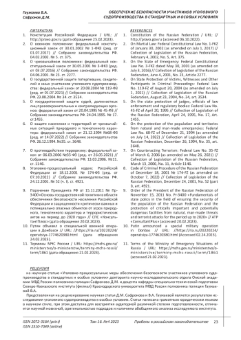 On State Protection of Victims, Witnesses and Other Participants in Criminal Proceedings: Federal Law No. 119-FZ of August 20, 2004 (as amended on July 1, 2021) // Collection of Legislation of the Russian Federation, August 23, 2004, No. 34, art. 3534.