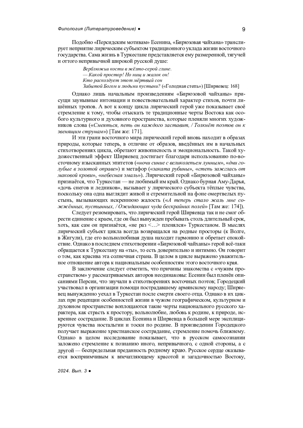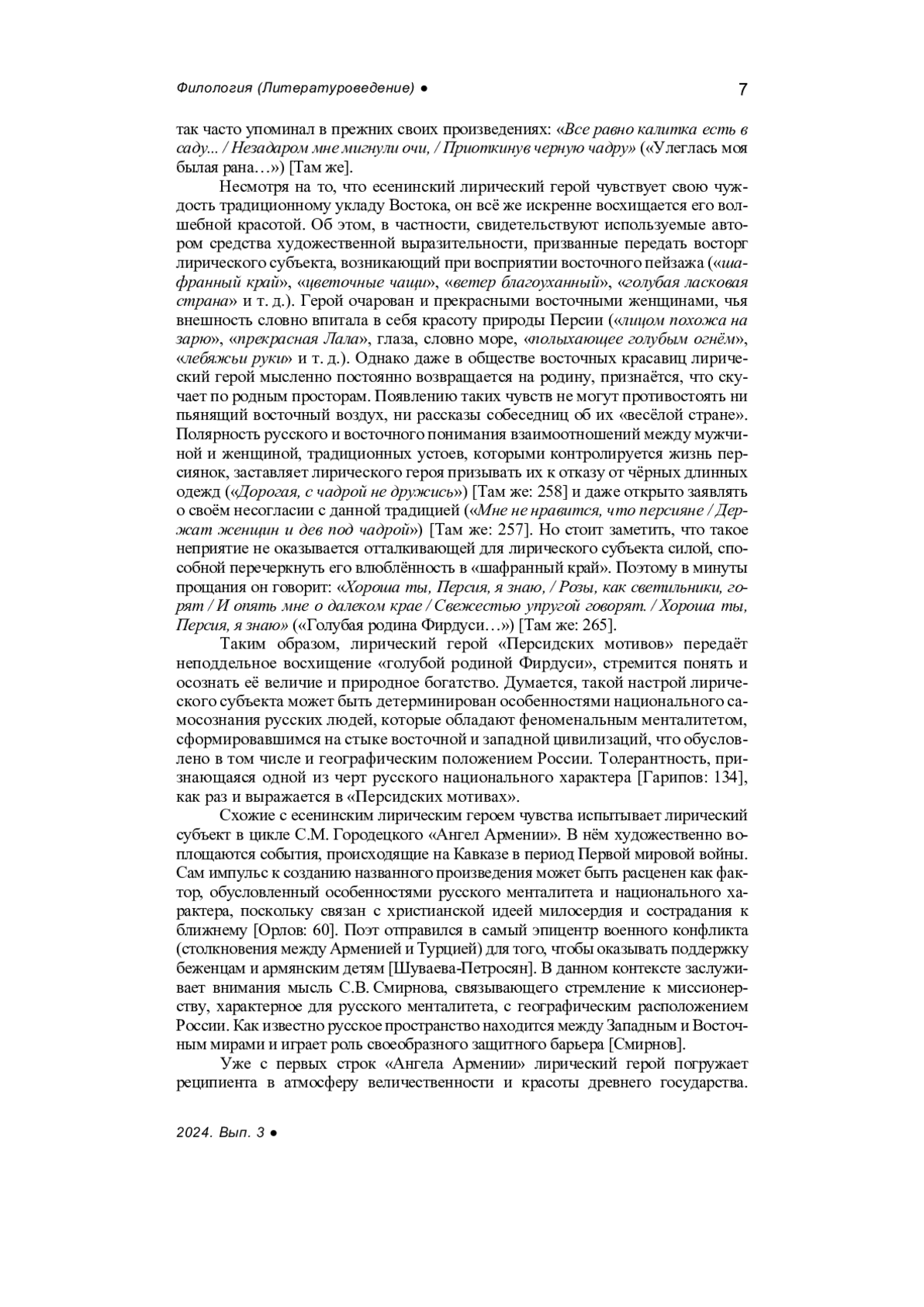 Статья: РЕЦЕПЦИЯ "ЧУЖОГО ПРОСТРАНСТВА" В ЦИКЛАХ С. А. ЕСЕНИНА "ПЕРСИДСКИЕ МОТИВЫ", А. В. ШИРЯЕВЦА "БИРЮЗОВАЯ ЧАЙХАНА", С. М. ГОРОДЕЦКОГО "АНГЕЛ АРМЕНИИ" (2024)