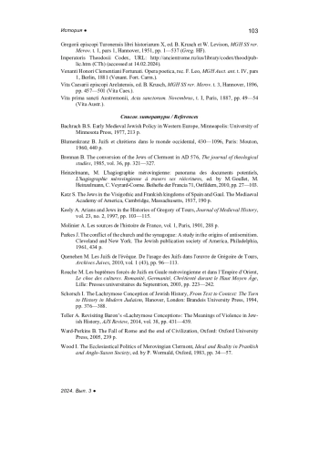 19. Quenehen M. Les Juifs de l’évêque. De l’usage des Juifs dans l’œuvre de Grégoire de Tours, Archives Juives, 2010, vol. 1 (43), pp. 96-113.