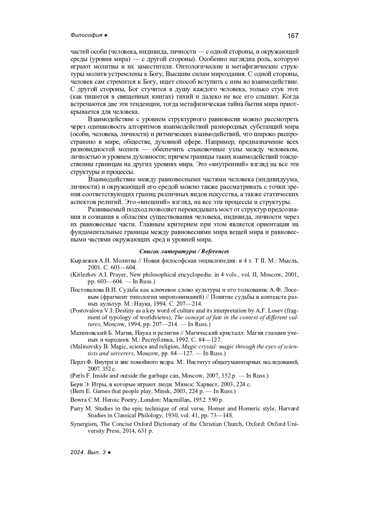 Структуры бессознательного, пред-сознания, сознания могут быть эмоциональными, знаковыми, мысленными, вербальными и т. п. Эволюция этого процесса шла от животных, к человекообразной обезьяне и далее к человеку, индивидууму, личности. Структуры сознания наглядны, обладают устойчивостью, иерархией, особым кодом, набором опорных ритмов, способностью к самоорганизации. В развиваемом подходе рассматриваются не сами пред-структуры и структуры сознания, а то, что стоит над ними — границы равновесных частей особи (человека, индивида, личности) с одной стороны и окружающей среды (уровня мира) с другой стороны. Взаимодействие с уровнем структурного равновесия можно рассмотреть через одинаковость алгоритмов взаимодействий разнородных субстанций мира (особи, человека, личности) и ритмических взаимодействий, что широко распространено в мире, обществе, духовной сфере, а также в динамических аспектах религий. Это внутренний взгляд на эти структуры. Взаимодействие между равновесными частями человека (индивидуума, личности) и окружающей его средой можно рассматривать с точки зрения равновесных границ различных видов искусства, а также статических аспектов религий. Это взгляд, ориентированный на эти структуры «извне». Особенно наглядна роль, которую играют в этих границах молитвы и их заместители. Онтологические и метафизические структуры молитв устремлены к Богу, Высшим силам мироздания. Развиваемый подход позволяет перекидывать мост от структур пред-сознания и сознания к областям существования человека, индивида, личности через их равновесные части. Главным критерием при этом является ориентация на фундаментальные границы между равновесиями мира вещей мира и равновесными частями окружающих сред и уровней мира.