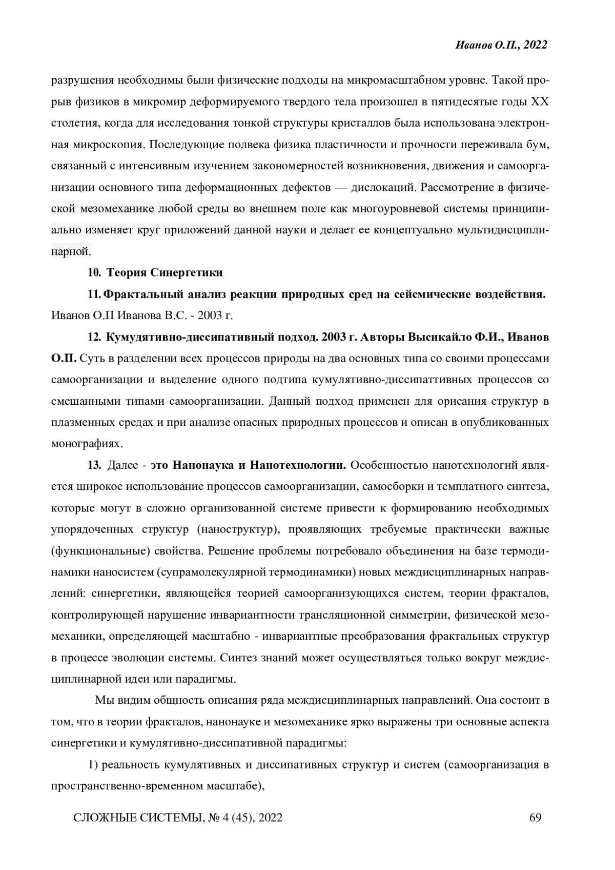 4. Иванов О.П., Высикайло Ф.И. Кумулятивно-диссипативные процессы и структуры (новое в синергетике). М.: Сб. “Синергетика геосистем”. 2007. с.36-42.