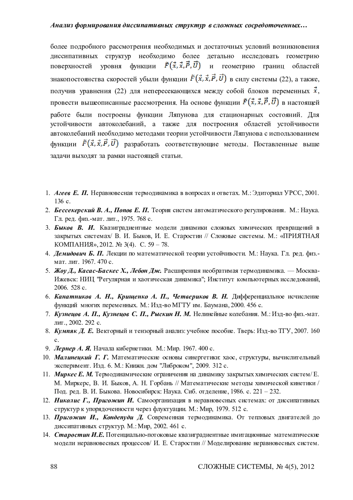 3. Быков В. И. Квазиградиентные модели динамики сложных химических превращений в закрытых системах/ В. И. Быков, И. Е. Старостин // Сложные системы, 2012. № 3(4). С. 59 - 78. EDN: PDSCOH