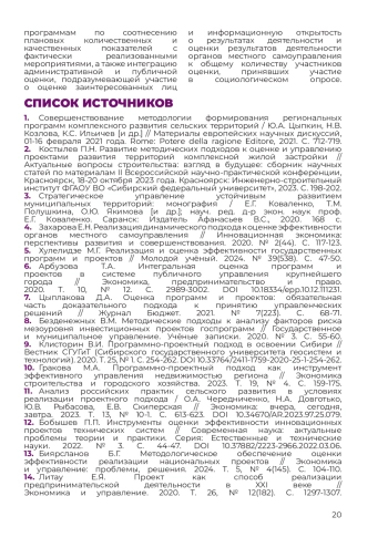 30. Grakova, M.A. Program-project approach as a tool for effective management of regional real estate // Economy of construction and urban economy. 2023. Vol. 19, No. 4. P. 159-175. (In Russ.).