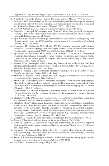 Журнал: ВЕСТНИК РОССИЙСКОГО УНИВЕРСИТЕТА ДРУЖБЫ НАРОДОВ. СЕРИЯ: СОЦИОЛОГИЯ