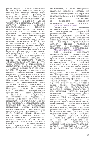 Статья: РИСКИ И ПЕРСПЕКТИВЫ РАЗВИТИЯ ЦИФРОВОГО ВЗАИМОДЕЙСТВИЯ ВЛАСТИ И НАСЕЛЕНИЯ В АРХАНГЕЛЬСКОЙ ОБЛАСТИ (2025)
