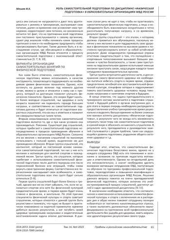 Статья: РОЛЬ САМОСТОЯТЕЛЬНОЙ ПОДГОТОВКИ ПО ДИСЦИПЛИНЕ "ФИЗИЧЕСКАЯ ПОДГОТОВКА" В ОБРАЗОВАТЕЛЬНЫХ ОРГАНИЗАЦИЯХ МВД РОССИИ (2023)
