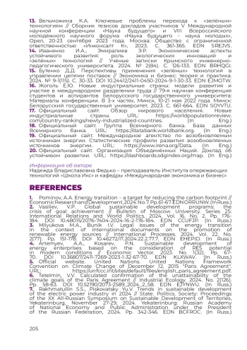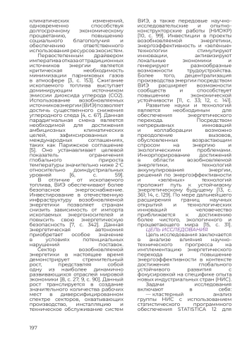 Ключевые фразы: наука, технология, ЭНЕРГЕТИЧЕСКИЙ ПЕРЕХОД, устойчивое развитие, новые индустриальные страны, возобновляемые источники энергии, инвестиции, кластерный анализ