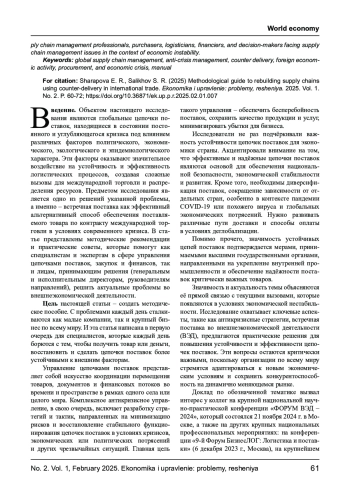 Объектом настоящего исследования являются глобальные цепочки поставок, находящиеся в состоянии постоянного и углубляющегося кризиса под влиянием различных факторов политического, экономического, экологического и эпидемиологического характера.
