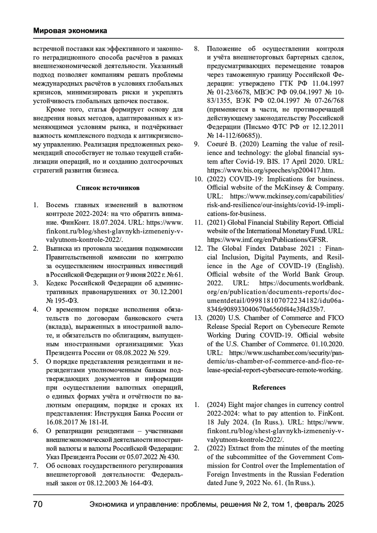 1. Восемь главных изменений в валютном контроле 2022-2024: на что обратить внимание. ФинКонт. 18.07.2024. URL: https://www.finkont.ru/blog/shest-glavnykh-izmeneniy-vvalyutnom-kontrole-2022/.