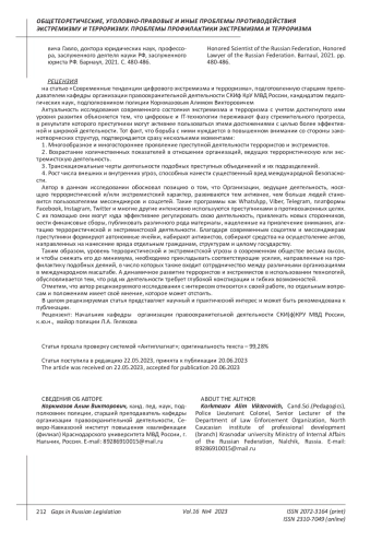 Статья: СОВРЕМЕННЫЕ ТЕНДЕНЦИИ ЦИФРОВОГО ЭКСТРЕМИЗМА И ТЕРРОРИЗМА (2023)