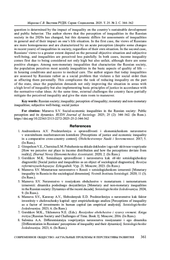 5. Мареева С.В. Неравенство в российском обществе в монетарном и немонетарном измерении: динамика последнего десятилетия // Социологические исследования. 2024. № 9. EDN: QXFCVB