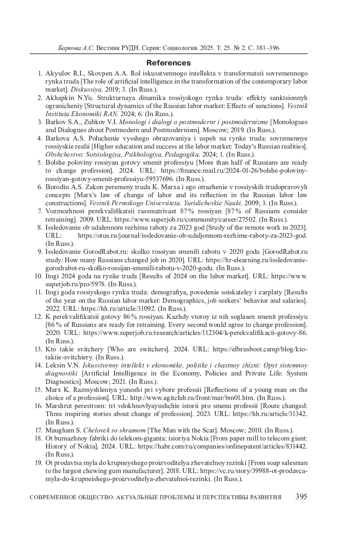4. Баркова А.С. Получение высшего образования и успех на рынке труда: современные российские реалии // Общество: социология, психология, педагогика. 2024. № 1. EDN: YWATXR