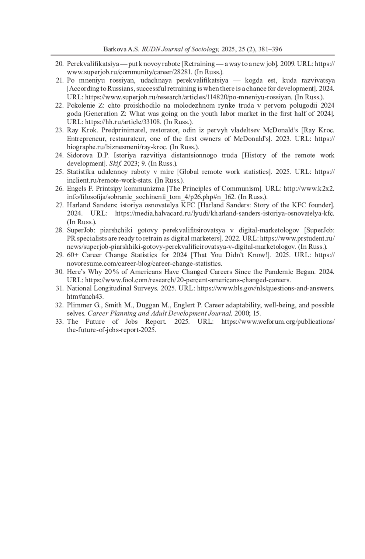 32. Plimmer G., Smith M., Duggan M., Englert P. Career adaptability, well-being, and possible selves // Career Planning and Adult Development Journal. 2000. Vol. 15.