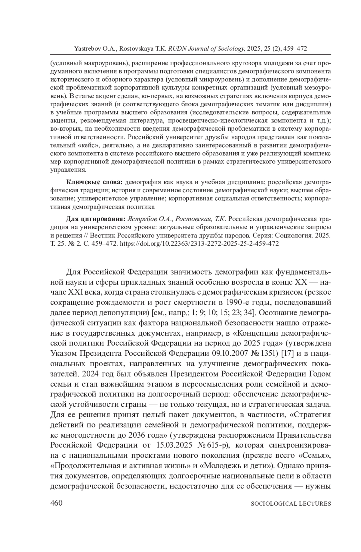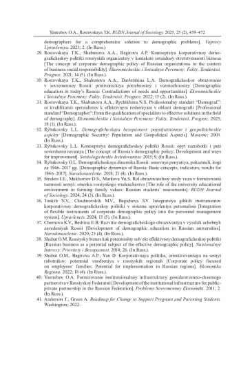 25. Ростовская Т.К., Бедрина Е.Б., Золотарева О.А. Развитие демографического образования в России и за рубежом / Отв. ред. Т.К. Ростовская. М., 2024. EDN: EDHIUU