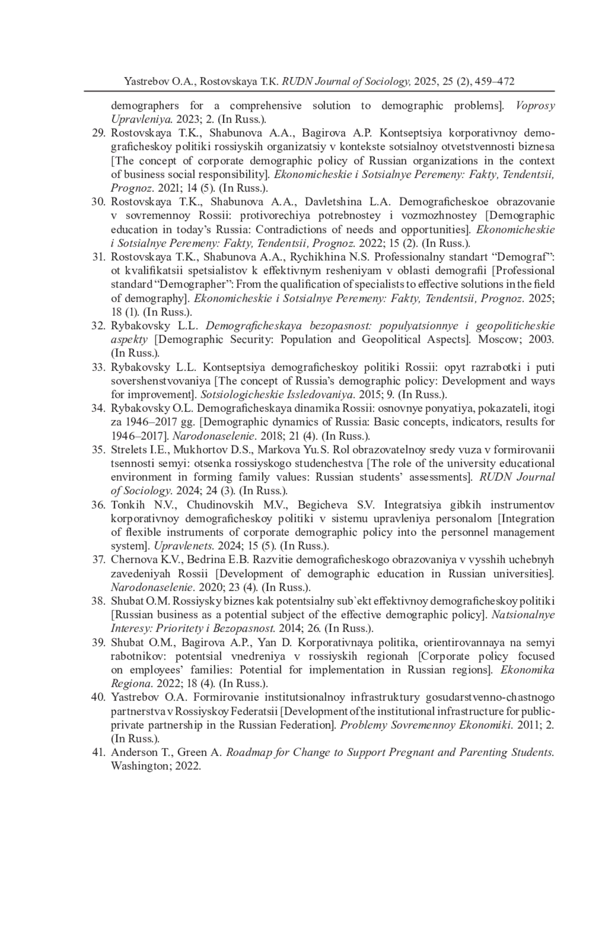 29. Ростовская Т.К., Шабунова А.А., Багирова А.П. Концепция корпоративной демографической политики российских организаций в контексте социальной ответственности бизнеса // Экономические и социальные перемены: факты, тенденции, прогноз. 2021. Т. 14. № 5. EDN: SZVVIW