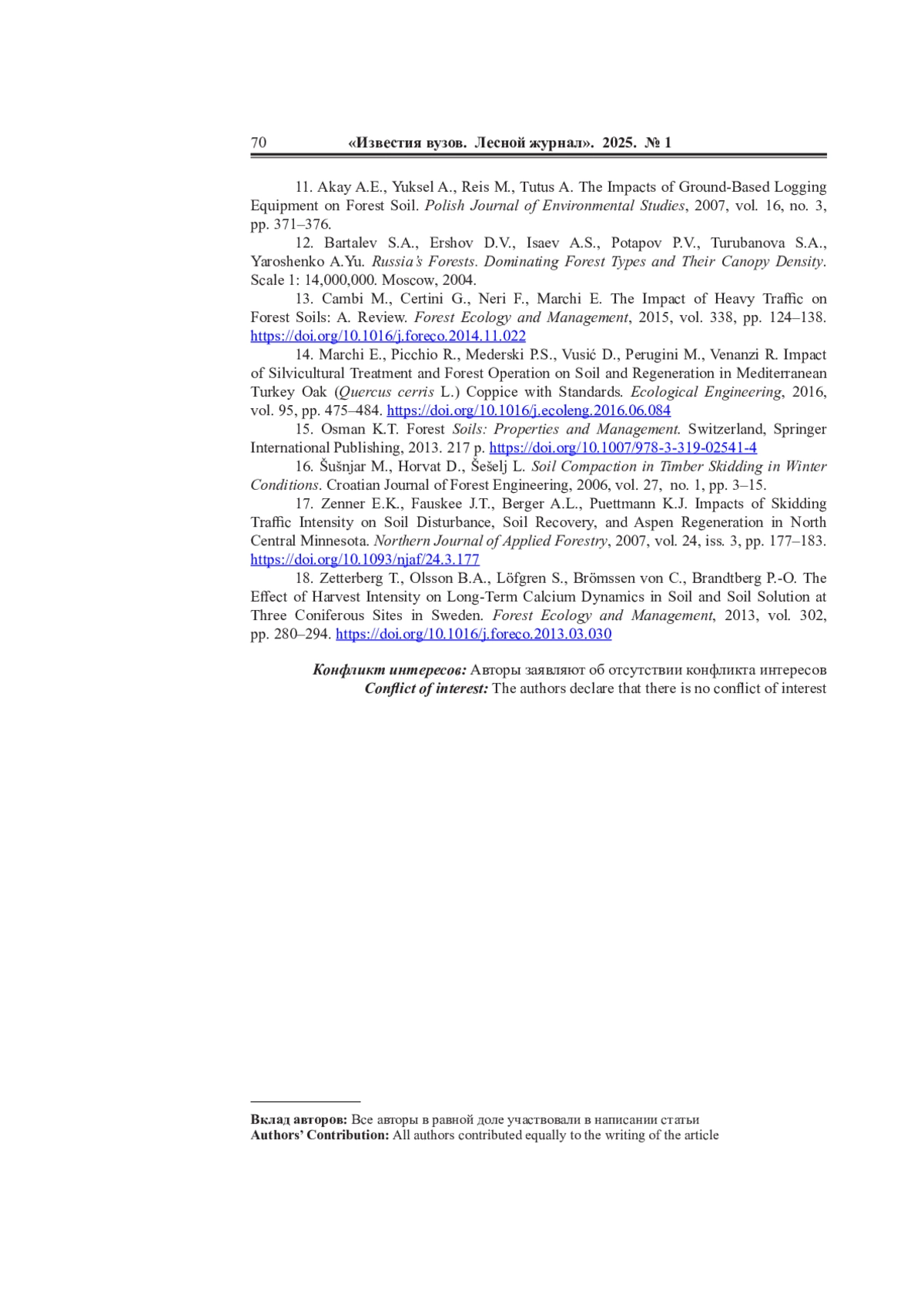 13. Cambi M., Certini G., Neri F., Marchi E. The Impact of Heavy Traffic on Forest Soils: A. Review. Forest Ecology and Management, 2015, vol. 338, pp. 124-138. DOI: 10.1016/j.foreco.2014.11.022