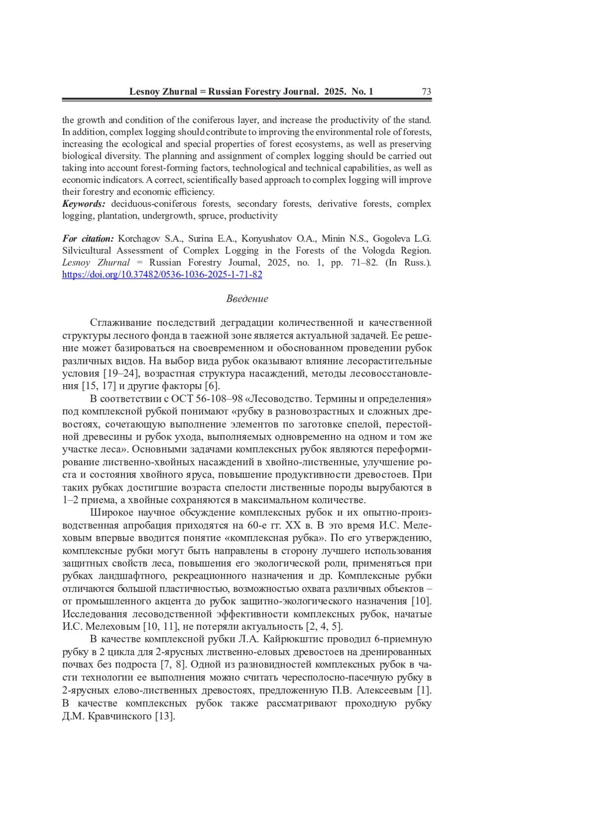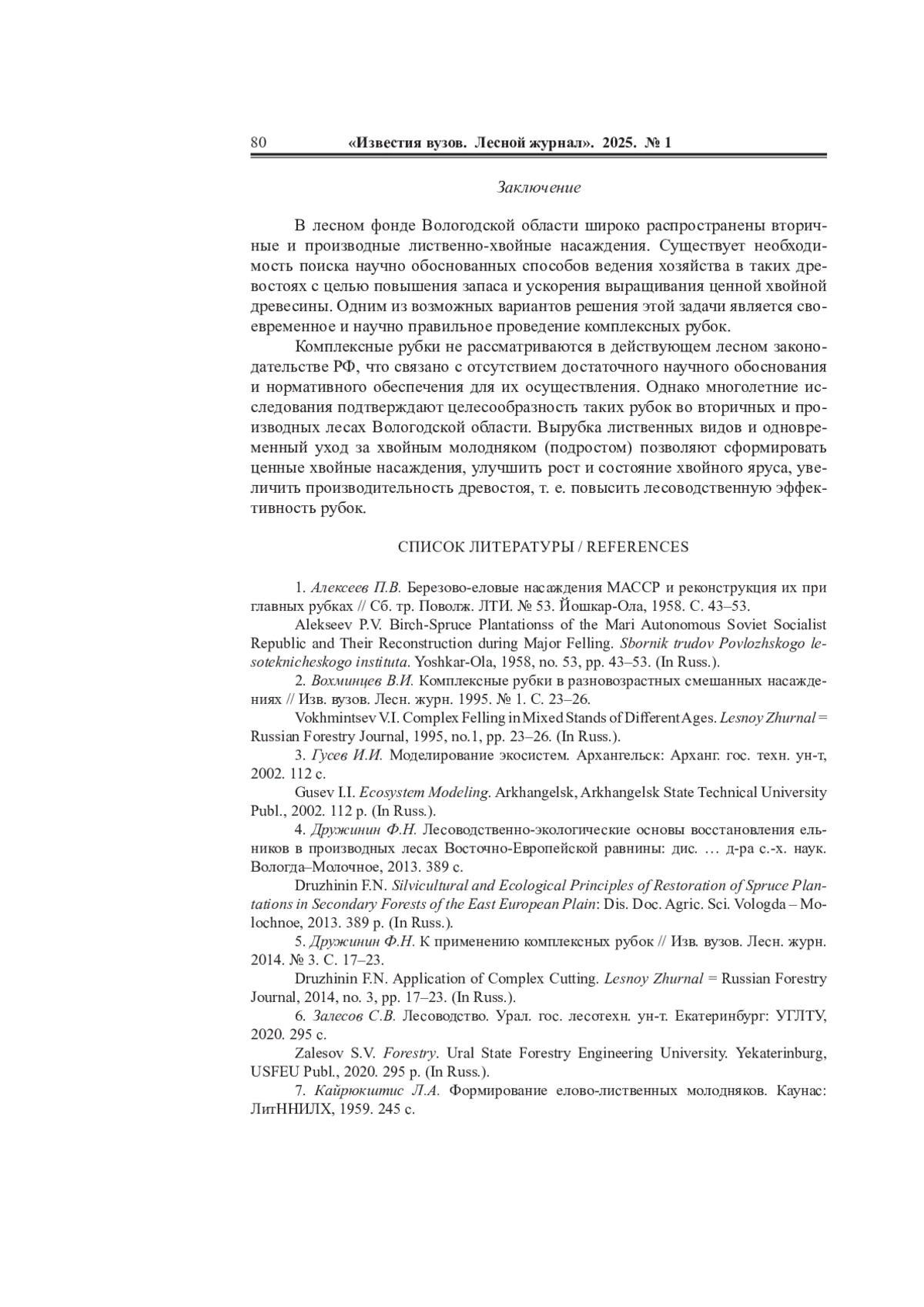 2. Вохминцев В.И. Комплексные рубки в разновозрастных смешанных насаждениях // Изв. вузов. Лесн. журн. 1995. No 1. С. 23-26.