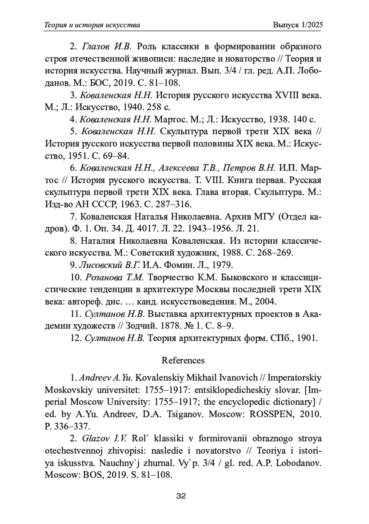 2. Глазов И.В. Роль классики в формировании образного строя отечественной живописи: наследие и новаторство // Теория и история искусства. Научный журнал. Вып. 3/4 / гл. ред. А.П. Лободанов. М.: БОС, 2019. С. 81-108.