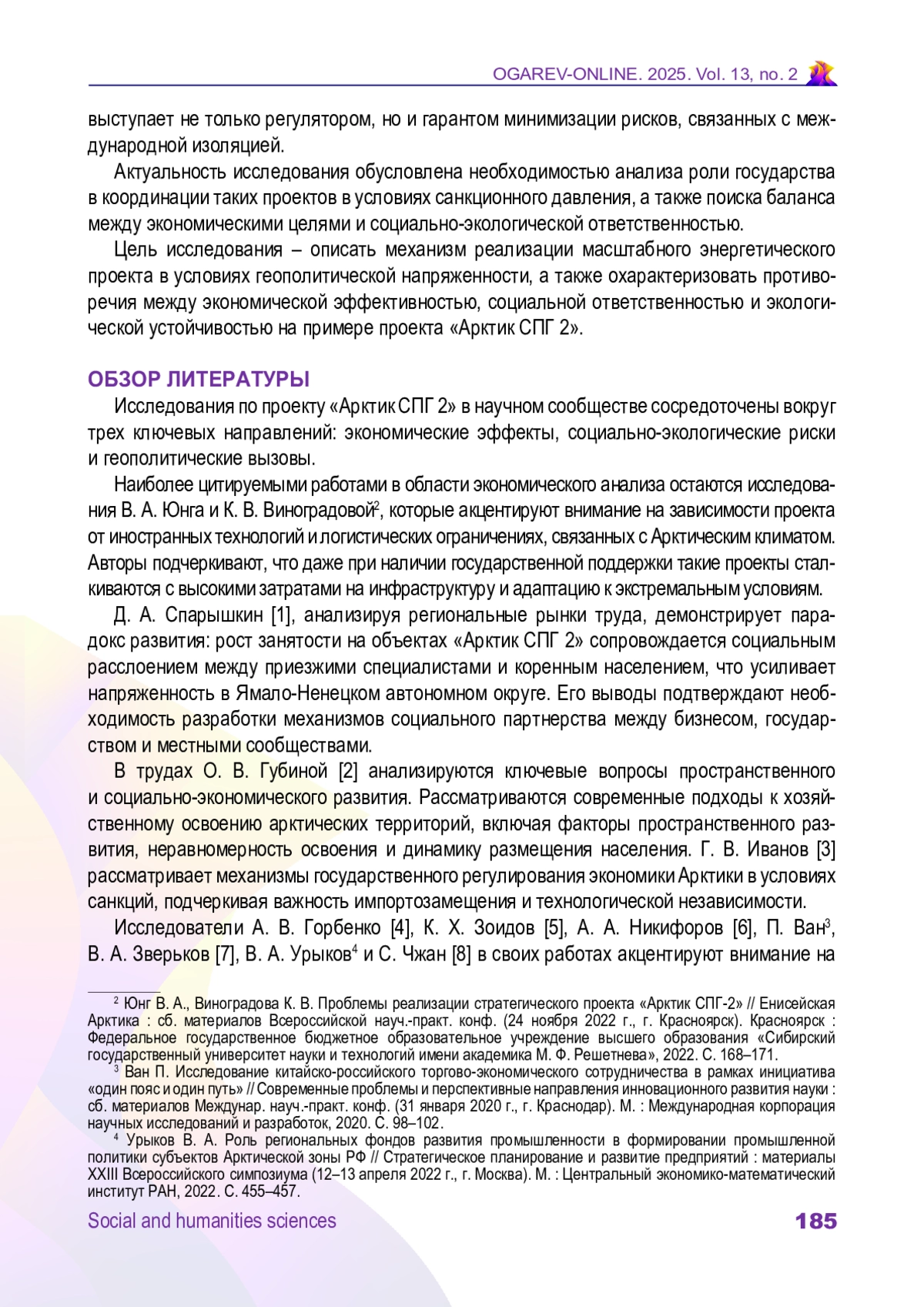1. Спарышкин Д. А. Влияние проекта “Арктик СПГ-2” на региональные рынки труда // Известия Кабардино-Балкарского научного центра РАН. 2024. Т. 26, № 4. С. 105-112. https://doi.org/10.35.330/1991-6639-2024-26-4-105-112.
