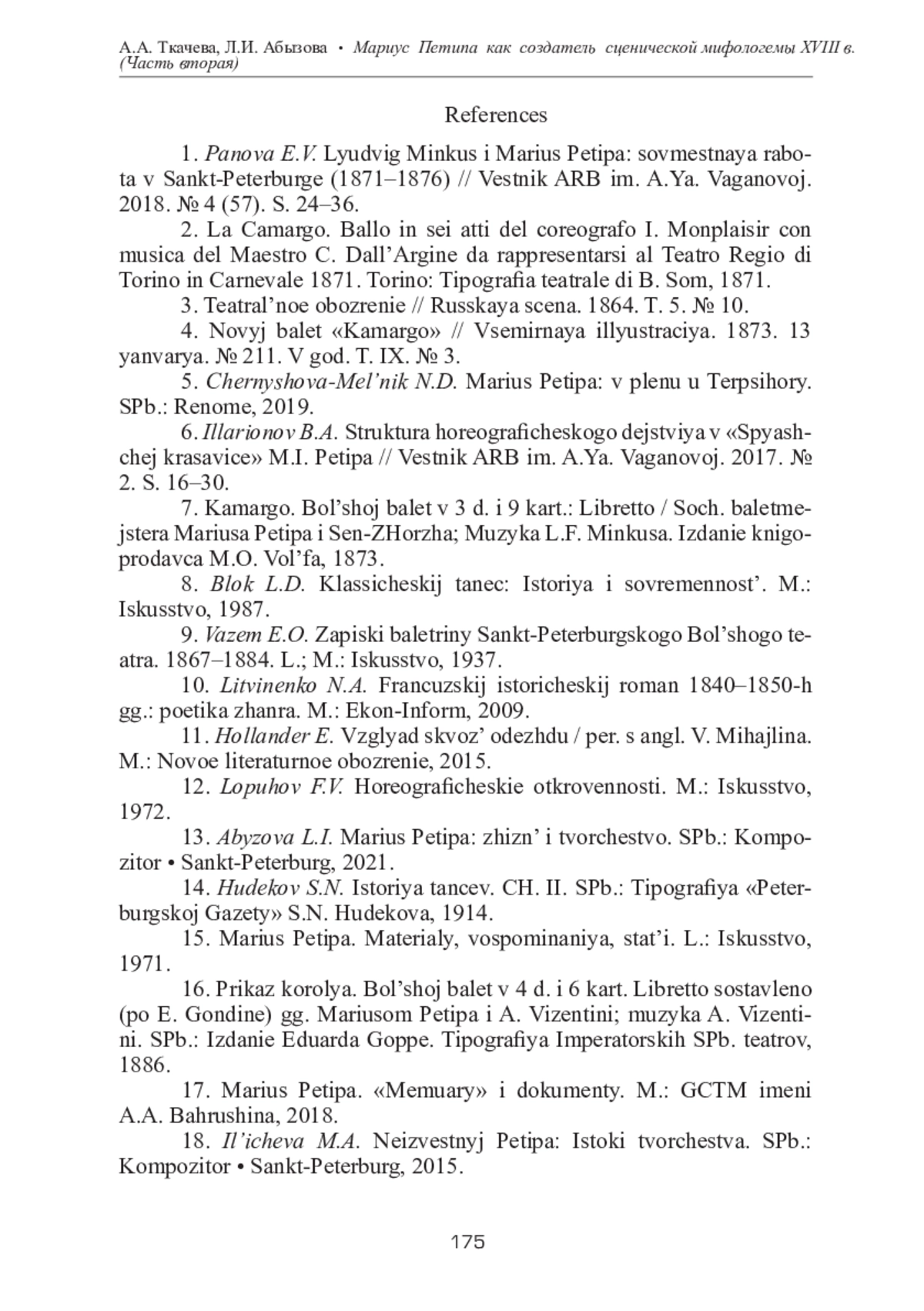 ТКАЧЕВА А. А., АБЫЗОВА Л. И. МАРИУС ПЕТИПА КАК СОЗДАТЕЛЬ СЦЕНИЧЕСКОЙ МИФОЛОГЕМЫ XVIII В.(ЧАСТЬ ВТОРАЯ) // ТЕОРИЯ И ИСТОРИЯ ИСКУССТВА. 2025. № 2
