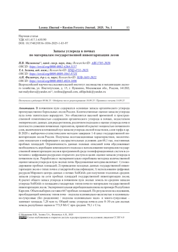 20. Чернова О.В., Рыжова И.М., Подвезенная М.А. Оценка запасов органического углерода лесных почв в региональном масштабе // Почвоведение. 2020. No 3. С. 340-350.