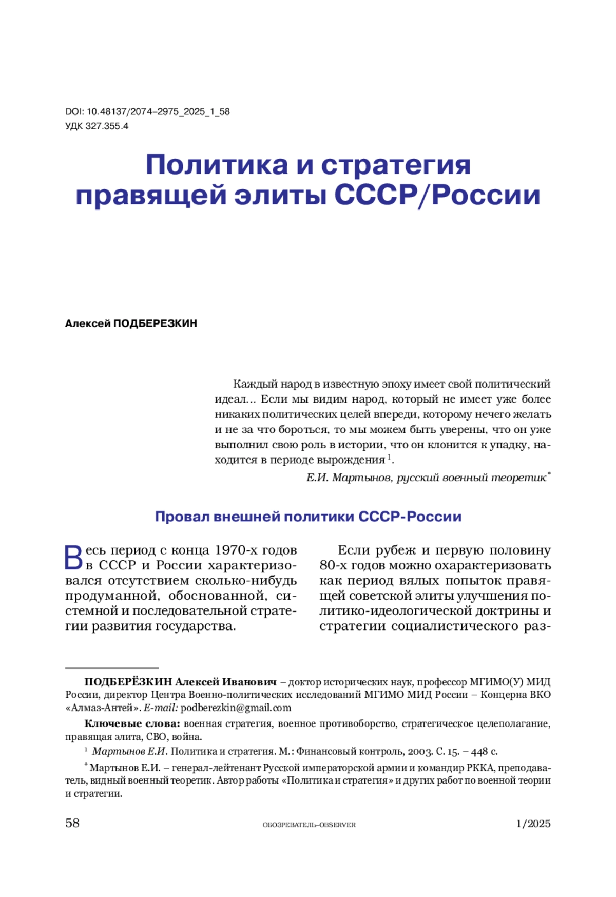 3. Мартынов Е.И. Политика и стратегия. М.: Финансовый контроль, 2003. - 448 с.