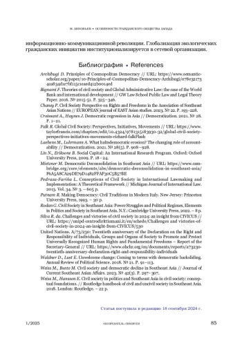 15. Weiss M., Bьnte M. Civil society and democratic decline in Southeast Asia // Journal of Current Southeast Asian Affairs. 2023. № 42(3). Р. 297-307.
