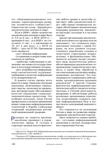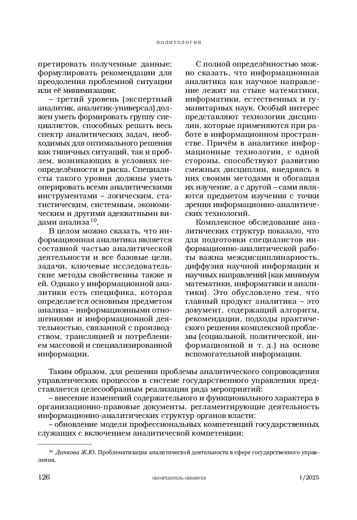 1. Данкова Ж.Ю. Проблематизация аналитической деятельности в сфере государственного управления // Власть. 2026. № 6. С. 15-21.