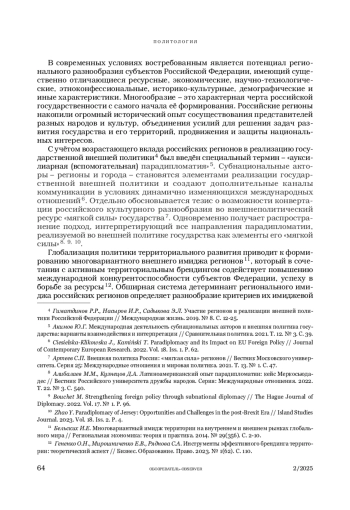 9. Лукашик А.П. Международные связи субъектов Российской Федерации в контексте современной геополитики // Международная жизнь. 2024. № 1. С. 14-21.