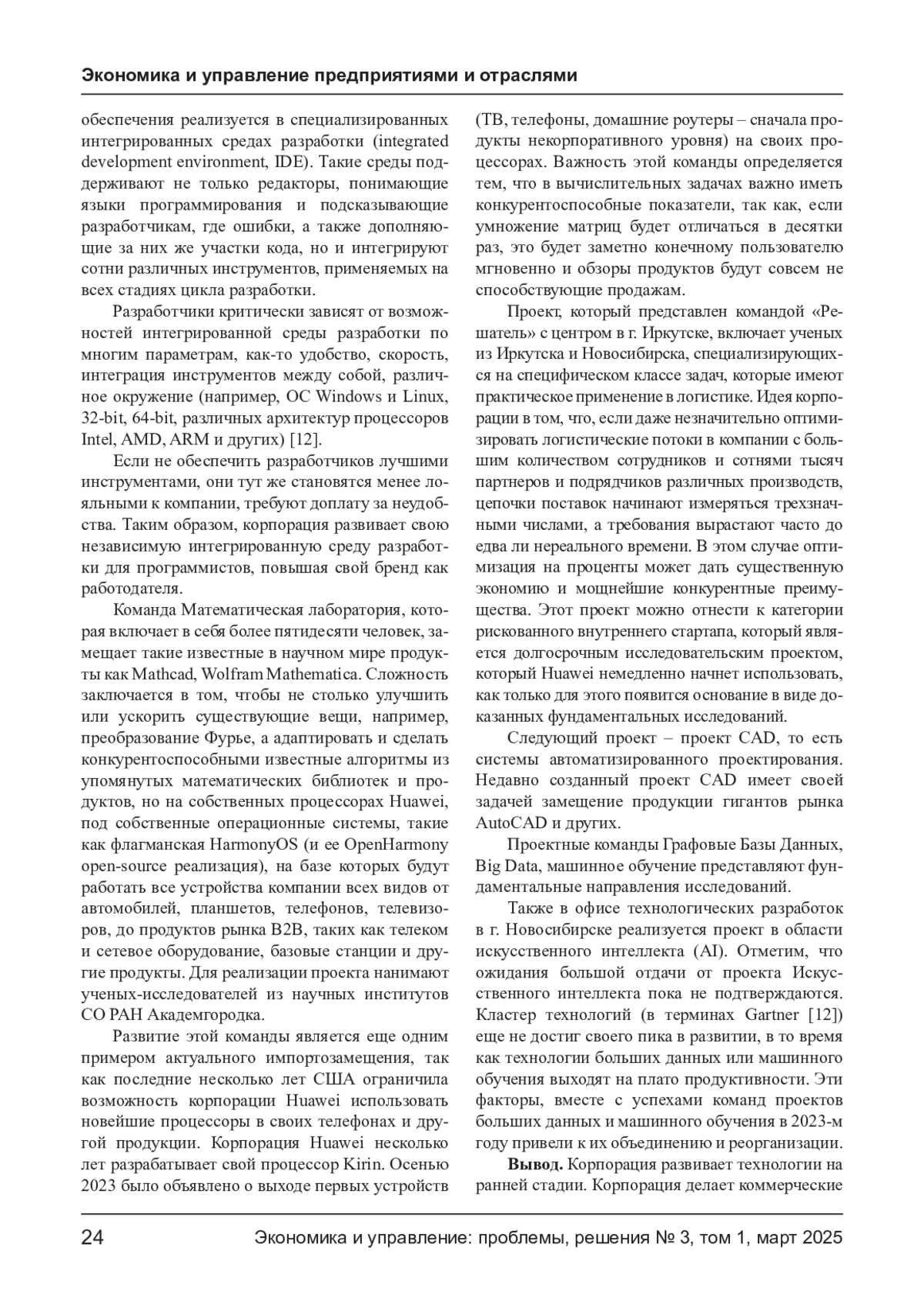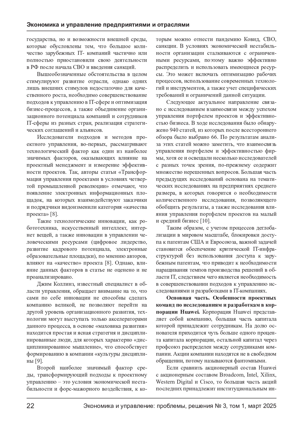Актуализация совершенствования подходов к управлению IT-компаниями связана с государственной задачей по развитию высокотехнологических производств в структуре экономики РФ, а также с задачей по снижению оттока высококвалифицированных кадров за рубеж. IT-компании являются передовыми в области использования инноваций, в том числе касающихся процессов управления. В компаниях используется проектный подход, матричные структуры управления, разрабатываются ключевые показатели эффективности проектов, внедряют MBO-планирование. Одной из передовых компаний на рынке информационных технологий является корпорация Huawei, имеющая с своей структуре центр разработки и развития компетенций в г. Новосибирске. Корпорация не размещает акции на фондовом рынке, поэтому не возникает необходимости перенаправлять часть прибыли на выплату дивидендов, что расширяет возможности компании в области инвестиций в долгосрочные проекты. К особенностям проектного менеджмента в корпорации Huawei относятся, во-первых, два контура разработки инновационных проектов в России и в КНР, во-вторых, большое количество НИОКР-проектов технологий, находящихся на разных стадиях технологического цикла, что требует разработки системы оценки зрелости технологий для получения максимального синергетического эффекта от взаимодействия внутри проектов.