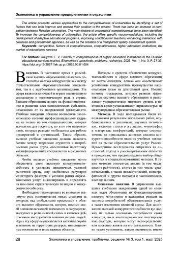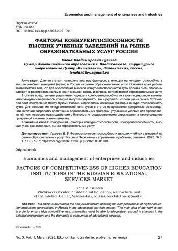 Статья: ФАКТОРЫ КОНКУРЕНТОСПОСОБНОСТИ ВЫСШИХ УЧЕБНЫХ ЗАВЕДЕНИЙ НА РЫНКЕ ОБРАЗОВАТЕЛЬНЫХ УСЛУГ РОССИИ (2025)