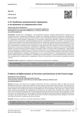 ЭКСТРЕМИЗМ, ТЕРРОРИЗМ, СОЦИАЛЬНО-ЭКОНОМИЧЕСКИЕ ПРОБЛЕМЫ, ЭТНИЧЕСКИЕ КОНФЛИКТЫ, СОЦИАЛЬНЫЕ РАЗНОГЛАСИЯ, МЕЖВЕДОМСТВЕННОЕ ВЗАИМОДЕЙСТВИЕ, ПРАВООХРАНИТЕЛЬНЫЕ ОРГАНЫ, ЦЕНТРЫ ПРОТИВОДЕЙСТВИЯ ЭКСТРЕМИЗМУ