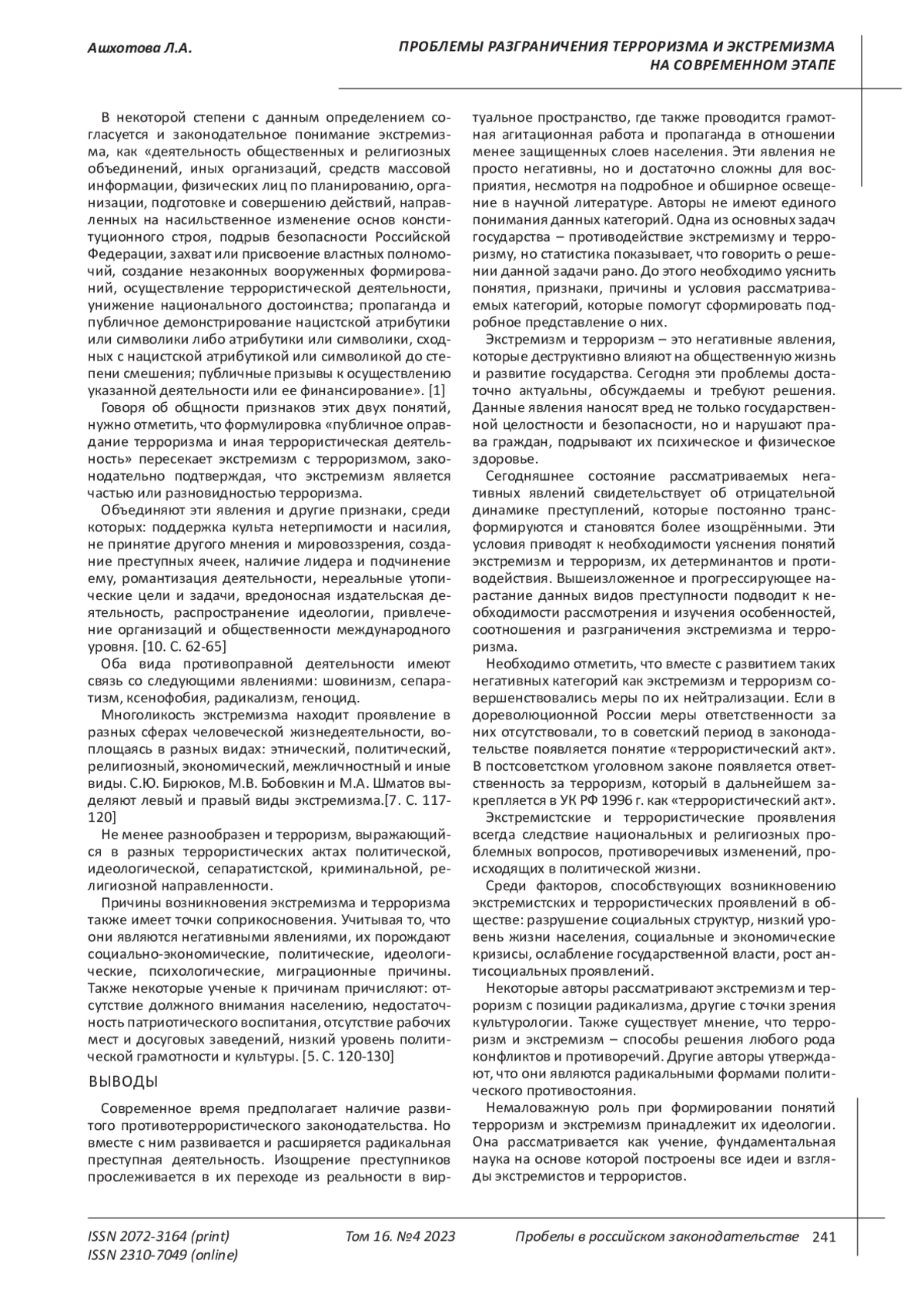 10. Пинкевич Т.В. Современное состояние экстремизма и терроризма в условиях развития цифровых технологий /Т.В. Пинкевич, О.А. Зубалова // ЮП. - 2020.- №3 (94). - С. 62-65. EDN: FNAAFS