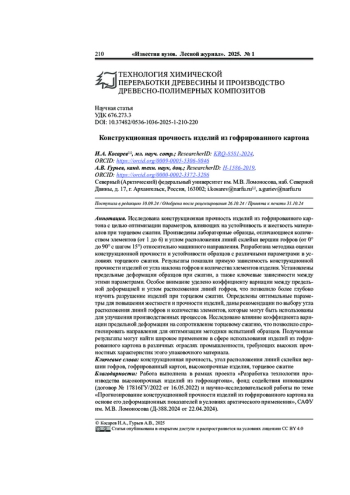 7. Казаков Я.В., Гурьев А.В., Комаров В.И., Крыжановский О.А., Журавлева А.Н. Жесткость при изгибе гофрокартона // Целлюлоза. Бумага. Картон. 2006. No 6. С. 50-53. EDN: HUIPGD