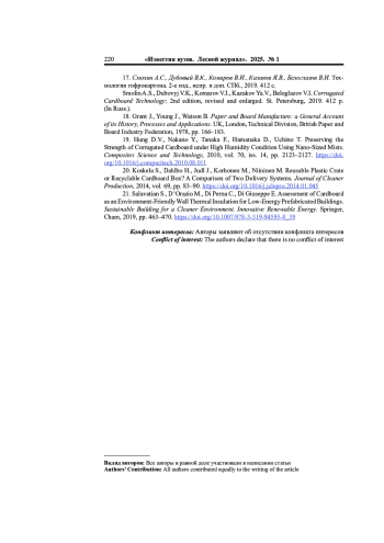 17. Смолин А.С., Дубовый В.К., Комаров В.И., Казаков Я.В., Белоглазов В.И. Технология гофрокартона. 2-е изд., испр. и доп. СПб., 2019. 412 с.