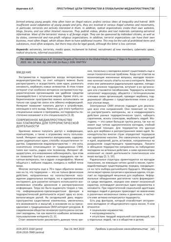9. Черкесова Д.А. Интернет, как платформа для пропаганды экстремизма и терроризма // В сборнике: Противодействие терроризму и экстремизму в информационных сферах. Сборник научных статей Всероссийской конференции. Москва, 2022. С. 225-228. EDN: QCWEJR