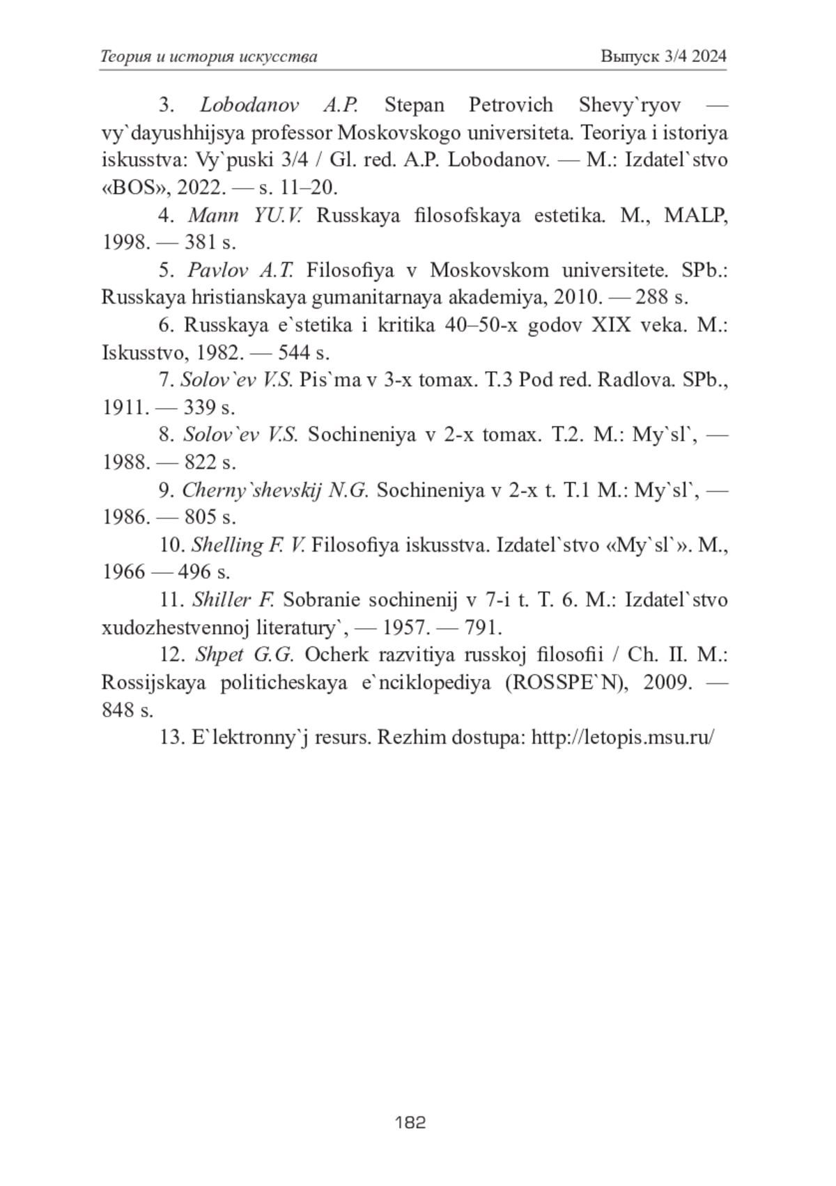 3. Лободанов А.П. Степан Петрович Шевырёв - выдающийся профессор Московского университета. Теория и история искусства: Выпуски 3/4 / Гл. ред. А.П. Лободанов. - М.: Издательство “БОС”, 2022, с. 11-20.