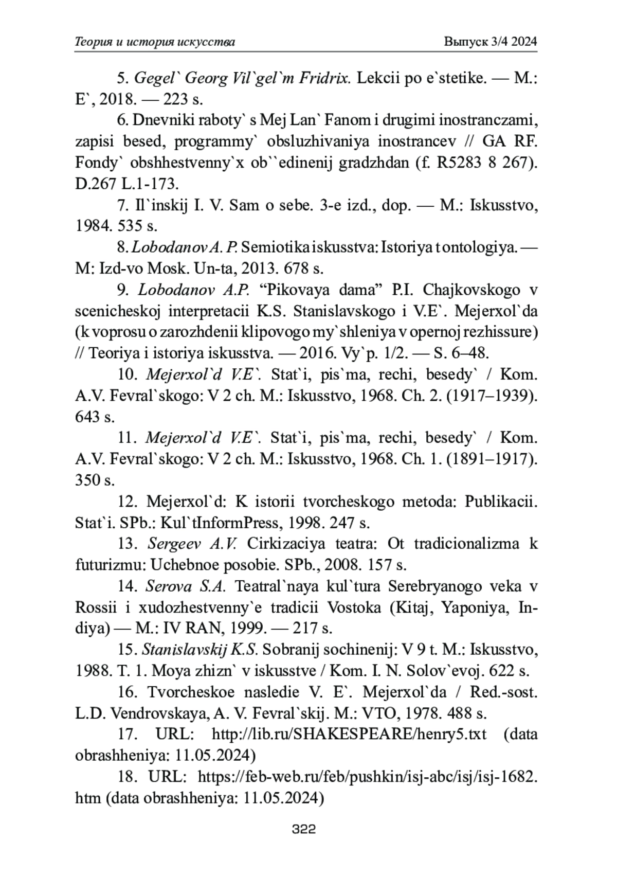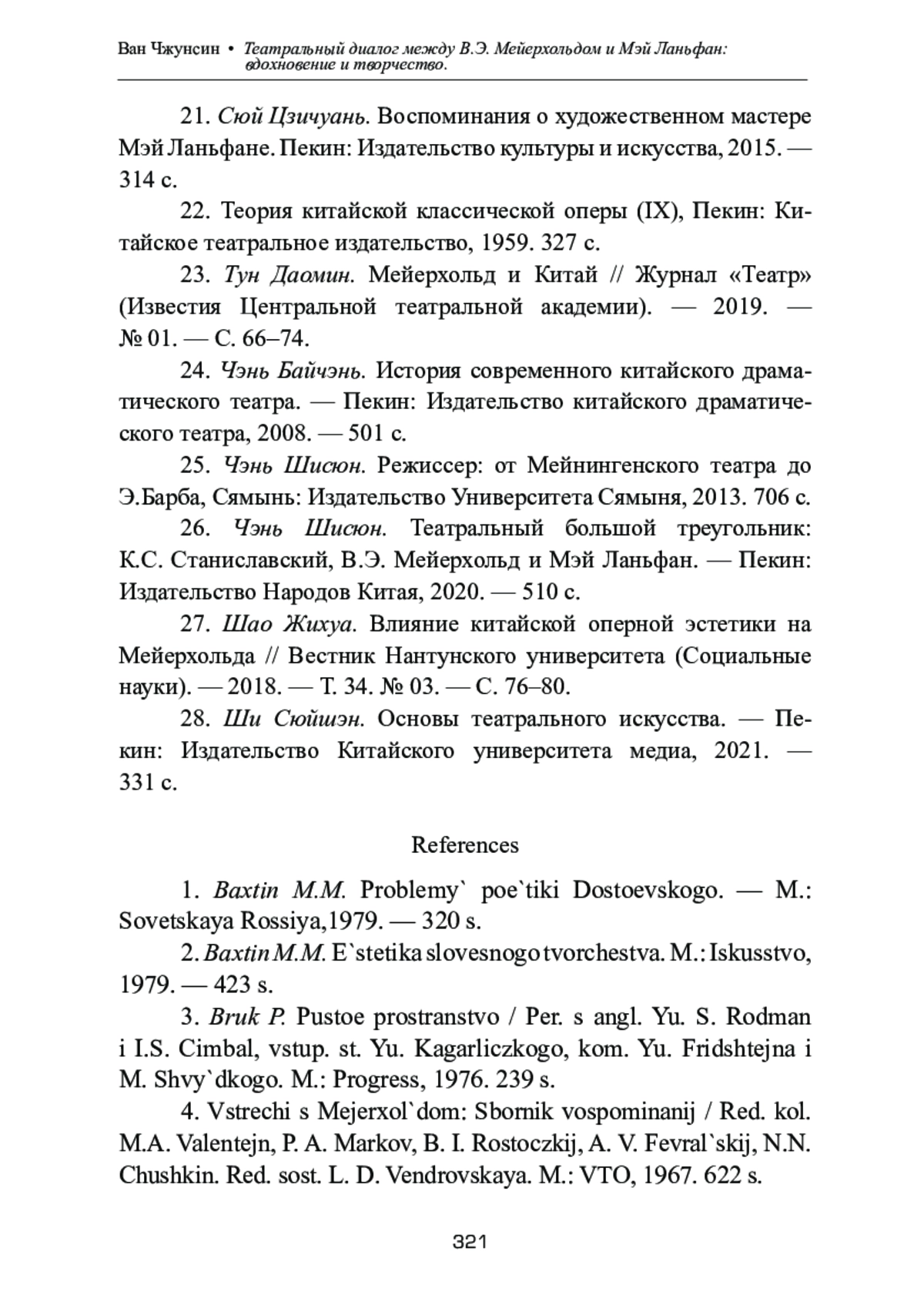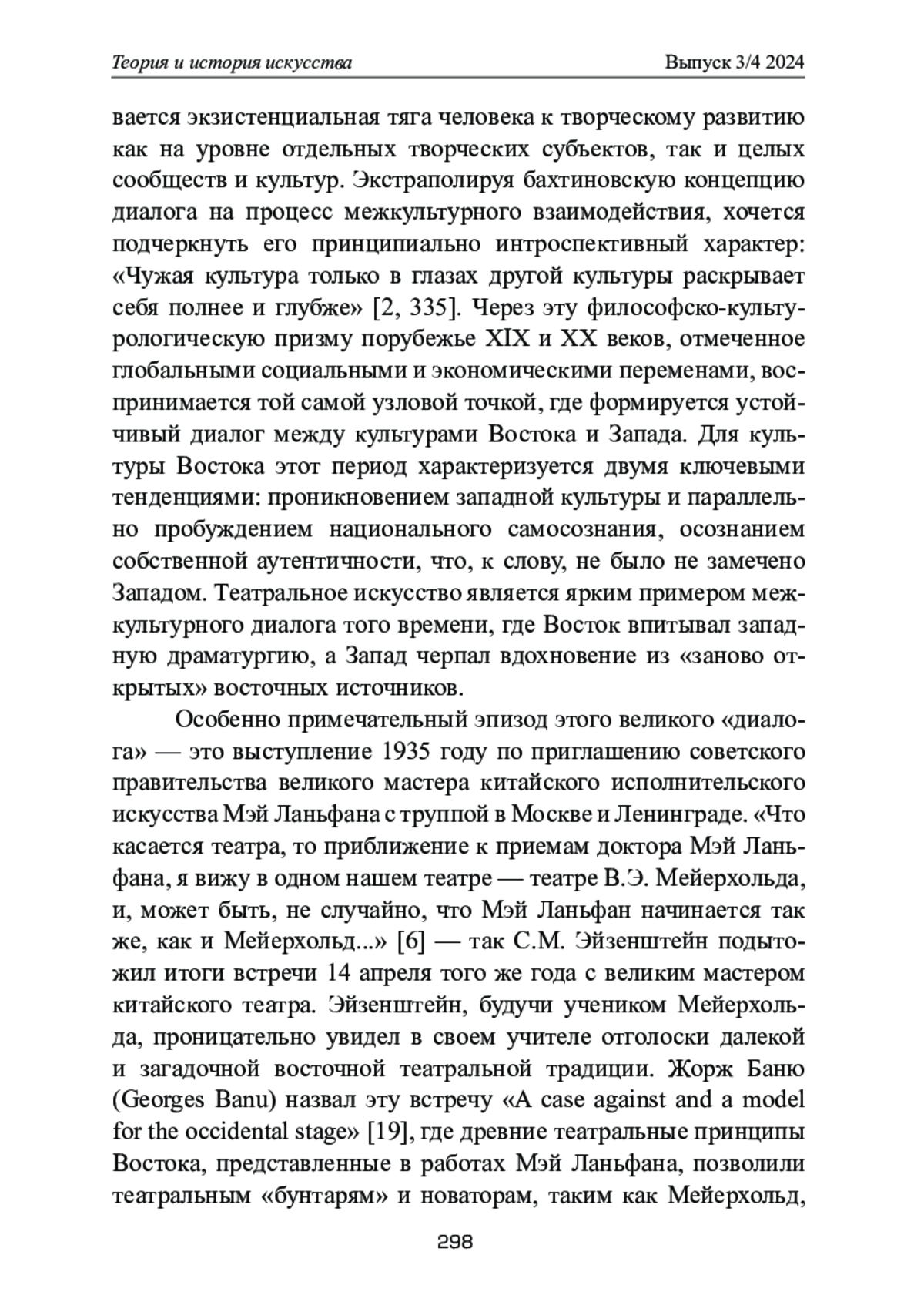 ВАН Ч. ТЕАТРАЛЬНЫЙ ДИАЛОГ МЕЖДУ В. Э. МЕЙЕРХОЛЬДОМ И МЭЙ ЛАНЬФАН: ВДОХНОВЕНИЕ И ТВОРЧЕСТВО // ТЕОРИЯ И ИСТОРИЯ ИСКУССТВА. 2024. № 3-4