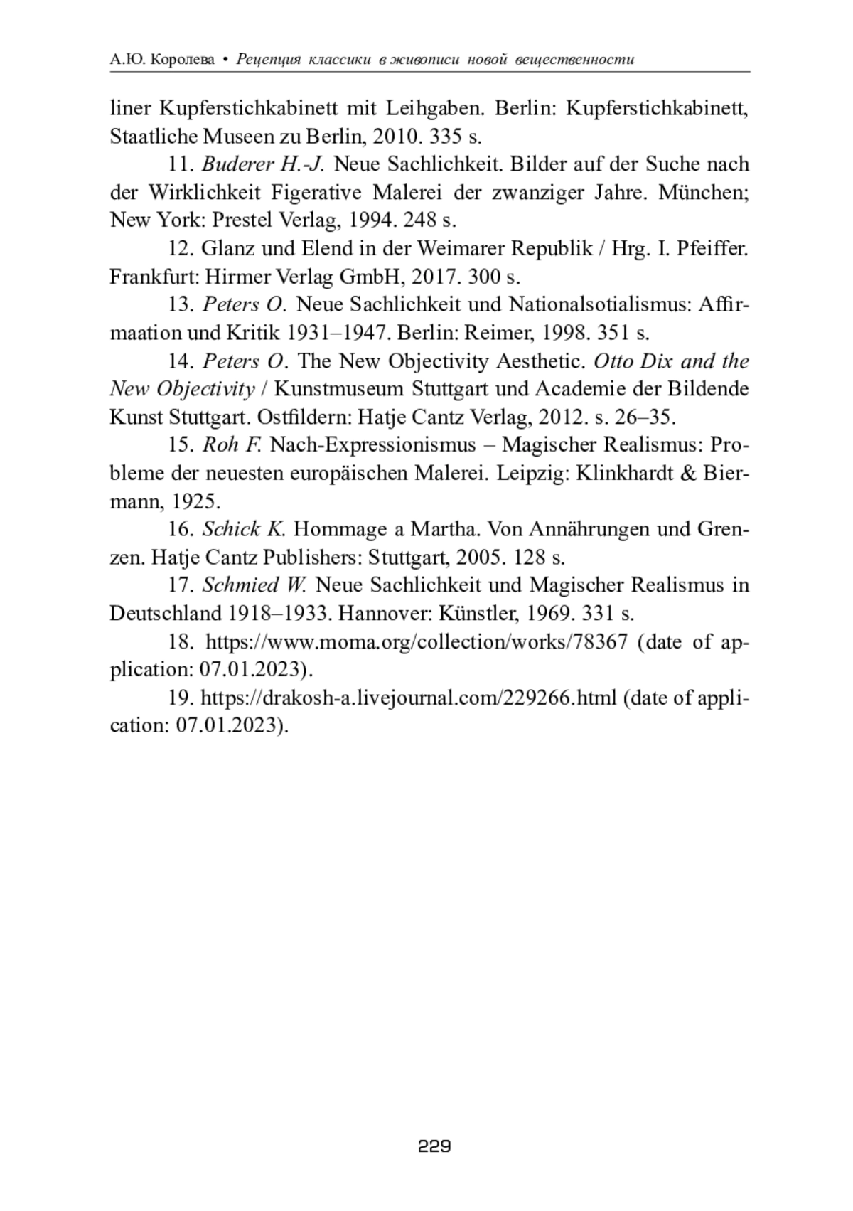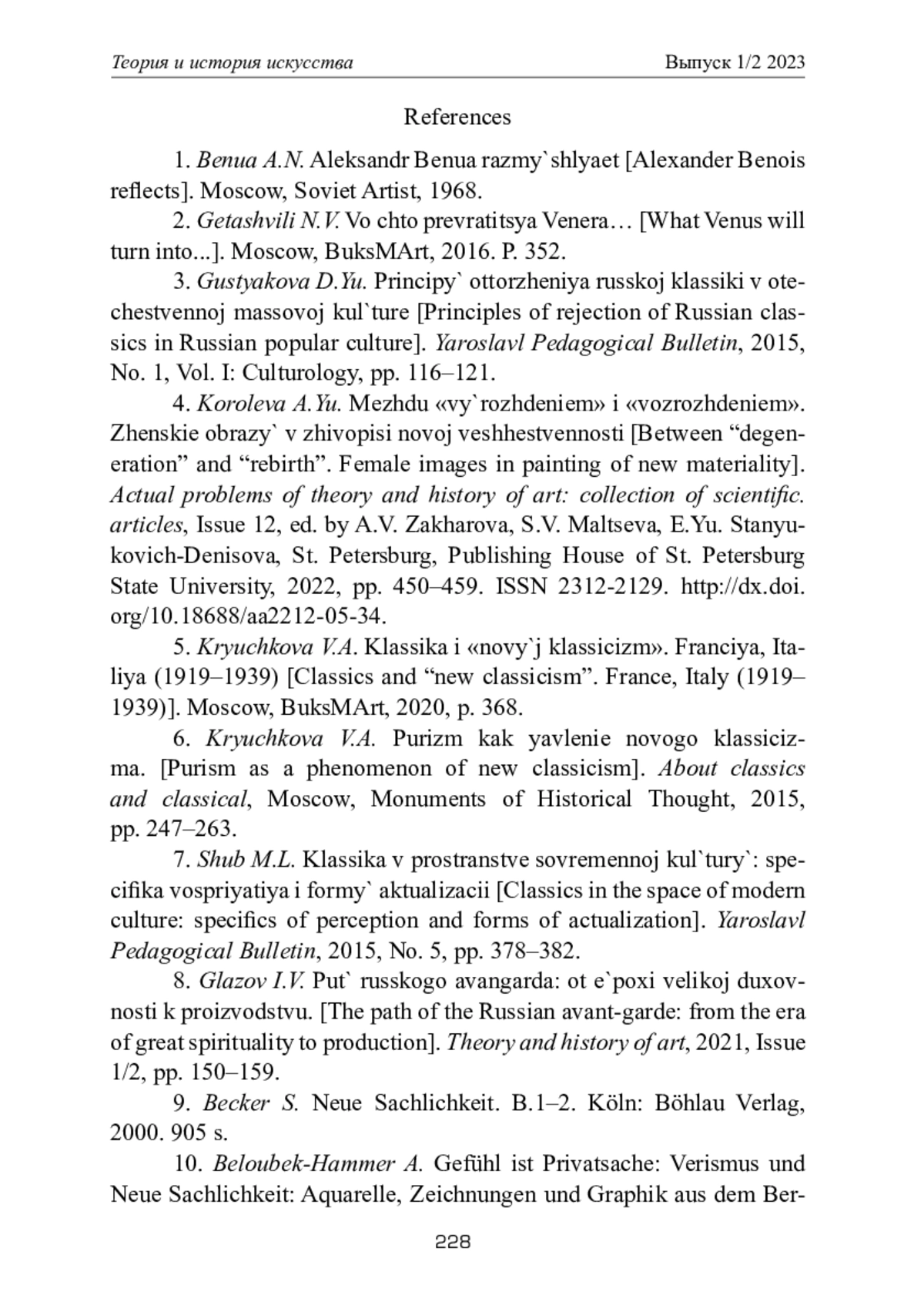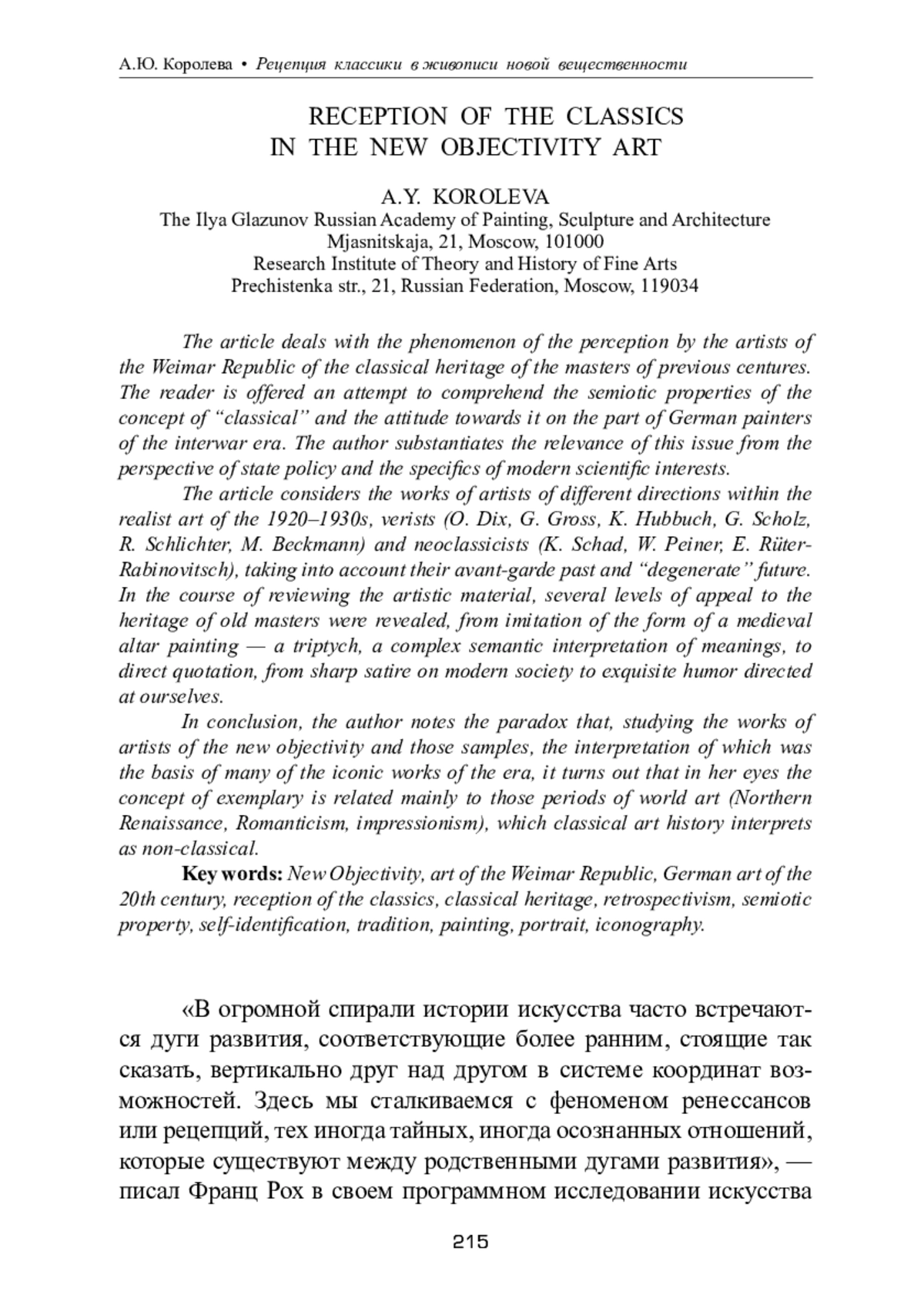 КОРОЛЕВА А. Ю. РЕЦЕПЦИЯ КЛАССИКИ В ЖИВОПИСИ НОВОЙ ВЕЩЕСТВЕННОСТИ // ТЕОРИЯ И ИСТОРИЯ ИСКУССТВА. 2023. № 1-2