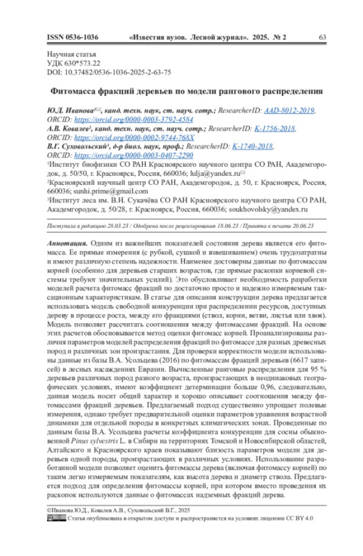 15. Суховольский В.Г. Распределение фитомассы деревьев по фракциям и оценка биопродуктивности деревьев и насаждений // Лесоведение. 1996. No 1. С. 30-40.