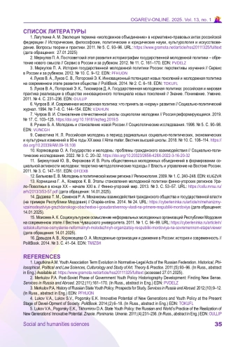 1. Лагуткина А. М. Эволюция термина “молодежное объединение” в нормативно-правовых актах российской федерации // Исторические, философские, политические и юридические науки, культурология и искусствоведение. Вопросы теории и практики. 2011. № 5. C. 93-96. URL: https://www.gramota.net/article/hss20111325/fulltext (дата обращения: 27.01.2025).