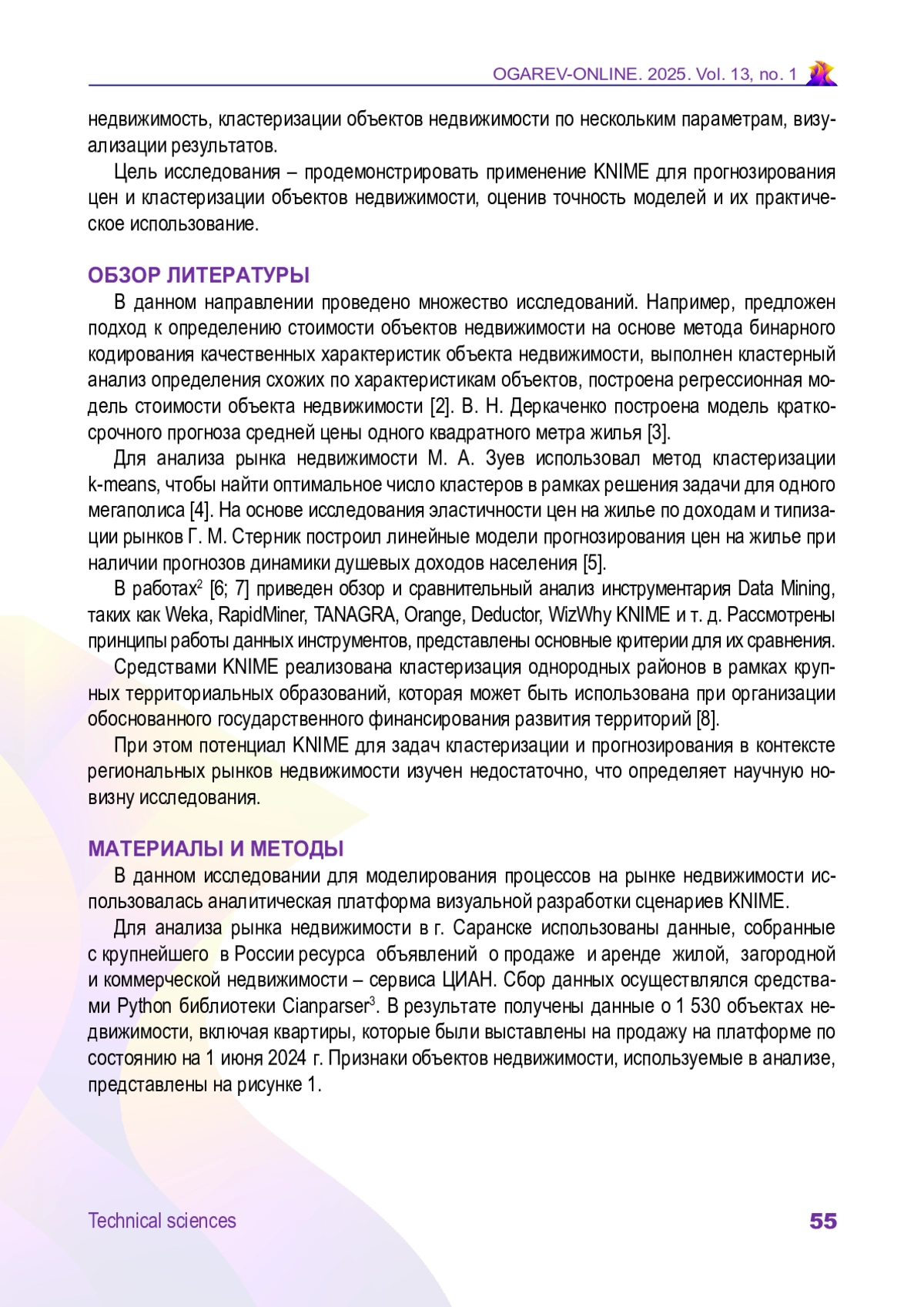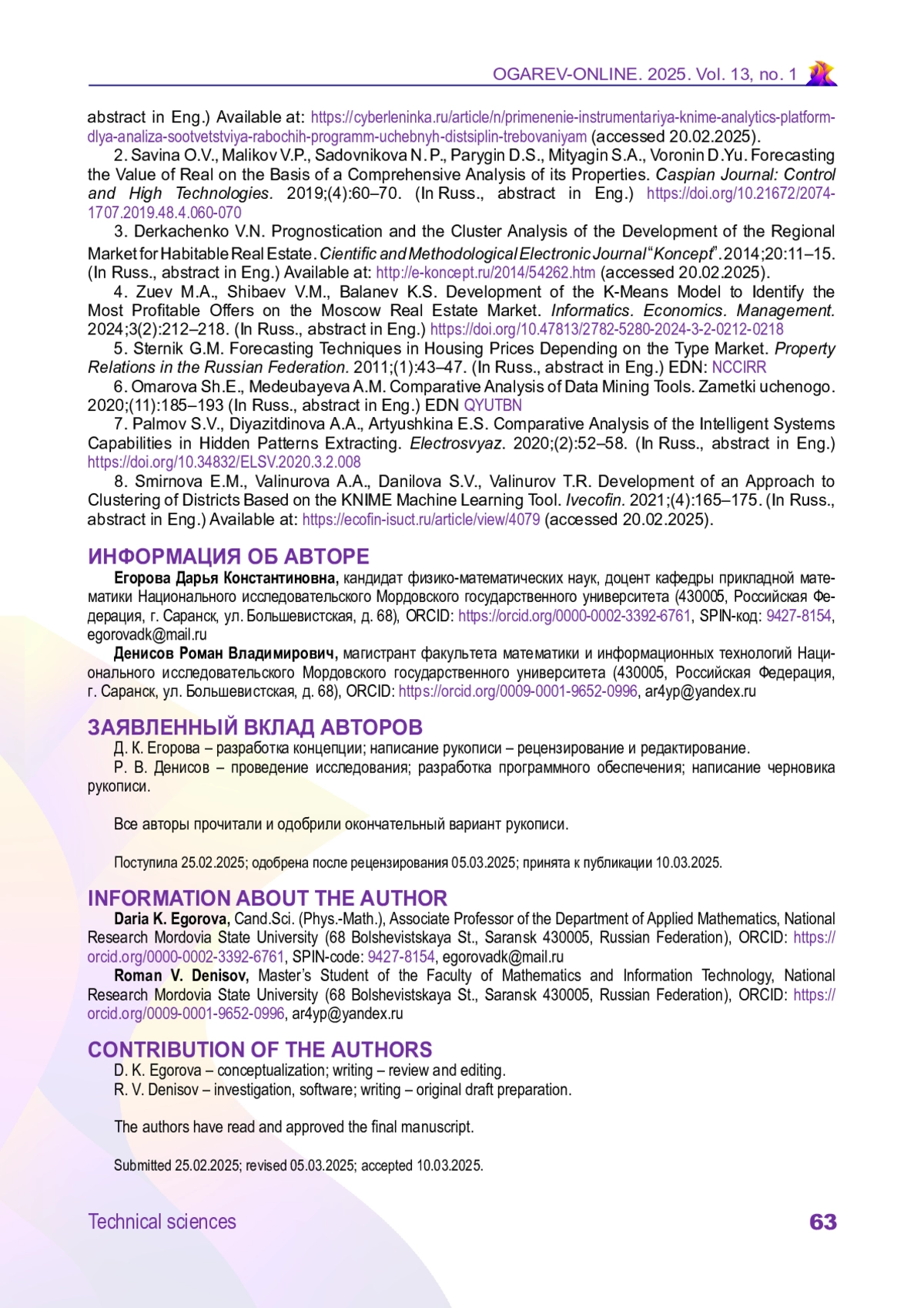 Обсуждение и заключение. KNIME подтвердил эффективность как low-code инструмент для анализа рынка недвижимости. Материалы статьи могут быть полезны для понимания динамики рынка недвижимости и прогнозирования его будущих тенденций.