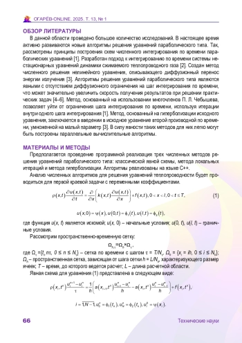 Разработка новых численных алгоритмов для решения задач теплопроводности имеет большое значение для развития науки и техники, а также для практического применения в различных отраслях промышленности и энергетики. Явные и неявные трехточечные численные алгоритмы1 являются широко используемыми методами для решения таких уравнений. Однако явные схемы имеют серьезные ограничения на шаг интегрирования по времени, а неявные методы не всегда обеспечивают требуемую точность при больших значениях шага интегрирования.