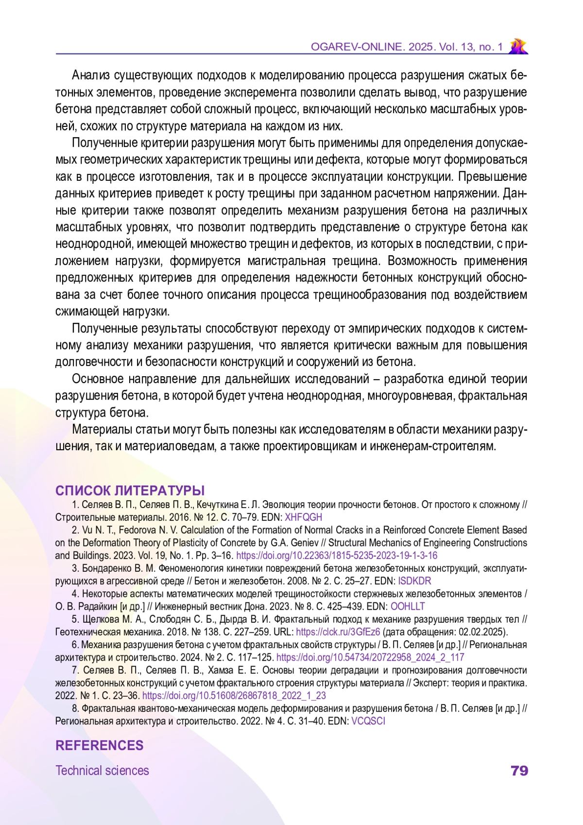 1. Селяев В. П., Селяев П. В., Кечуткина Е. Л. Эволюция теории прочности бетонов. От простого к сложному // Строительные материалы. 2016. № 12. С. 70-79.