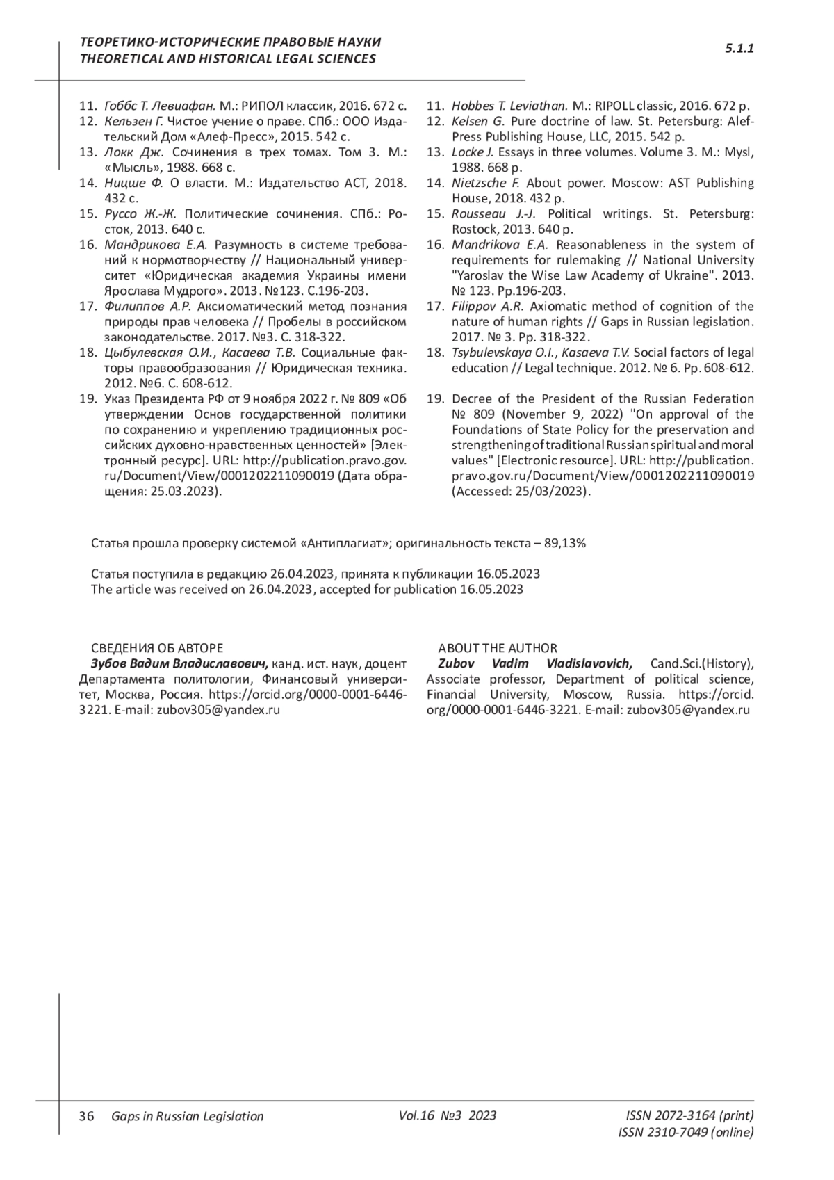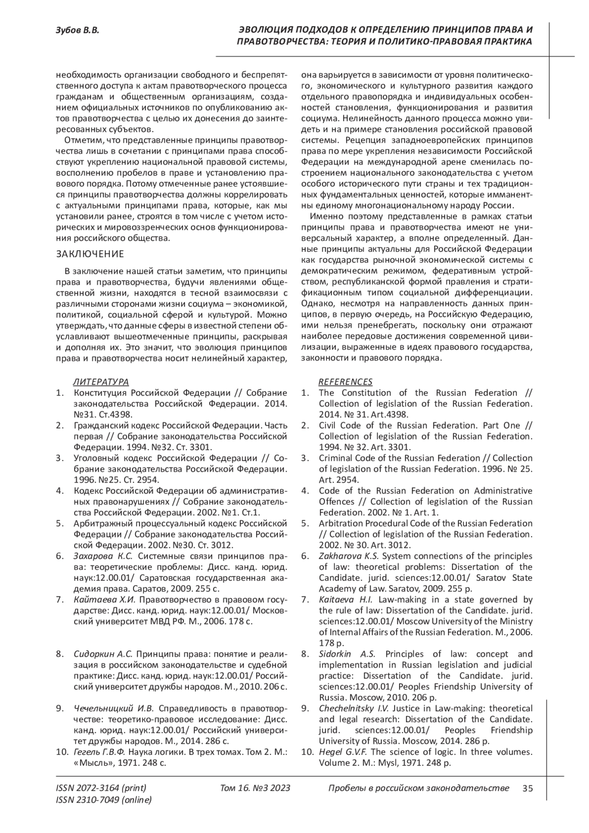 ЗУБОВ В. В. ЭВОЛЮЦИЯ ПОДХОДОВ К ОПРЕДЕЛЕНИЮ ПРИНЦИПОВ ПРАВА И ПРАВОТВОРЧЕСТВА: ТЕОРИЯ И ПОЛИТИКО-ПРАВОВАЯ ПРАКТИКА // ПРОБЕЛЫ В РОССИЙСКОМ ЗАКОНОДАТЕЛЬСТВЕ. 2023. Т. 16 № 3