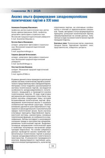 В рамках данной статьи проводится детальный анализ системы политических партий и политического представительства в Западной Европе. Авторами статьи подробно рассматривается система политических партий, исследуются особенности западноевропейского политического ландшафта и проводится анализ политических практик. В ходе подготовки материалов для написания статьи были подробно изучены следующие темы: история возникновения политических партий, формирования политической мысли и основных особенностей партийной структуры. Особое внимание уделяется роли Европейского парламента в законодательной и исполнительной сферах политической жизни. Были изучены ключевые принципы Европейской парламентской системы, рассмотрены основные политические фракции, их особенности и классификация. Авторы исследуют и анализируют основные тренды в пространстве западноевропейских политический партий. Выделяют основные направления политической идеи и наиболее популярные настроения среди граждан Евросоюза. На основе собранных данных проводится анализ наиболее примечательных политических партий в разных странах западноевропейского политического пространства. В результате проведенного анализа формулируется партийная цель, идеологическая принадлежность, количество соратников партии, ее ключевые особенности и отличия от идеологических союзников. Также, авторами статьи формулируются принципы успешной политической партии, сформулированные на основе данных, полученных в ходе изучения политических партий Западной Европы.