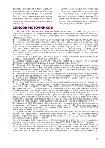 7. Баталов Д.Е. Органы публичной власти в системе обеспечения национальной безопасности Российской Федерации: проблемы функционирования и взаимодействия // Вестник Сибирского юридического института МВД России. 2025. № 1(58). С. 184-190.